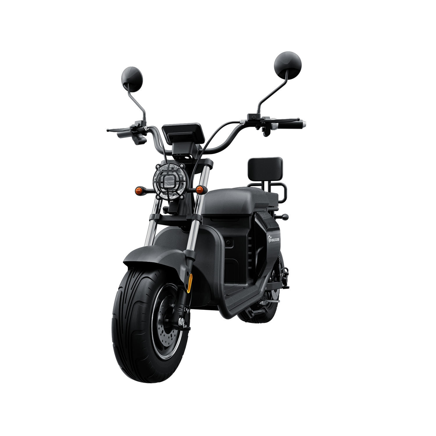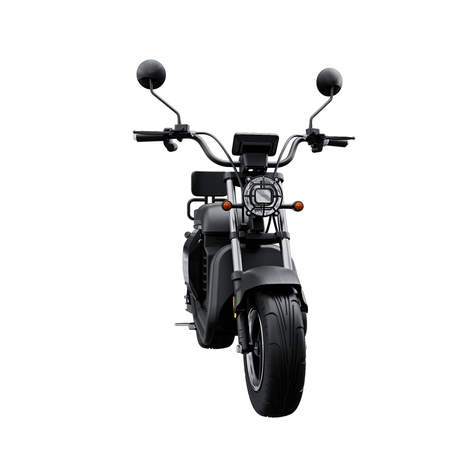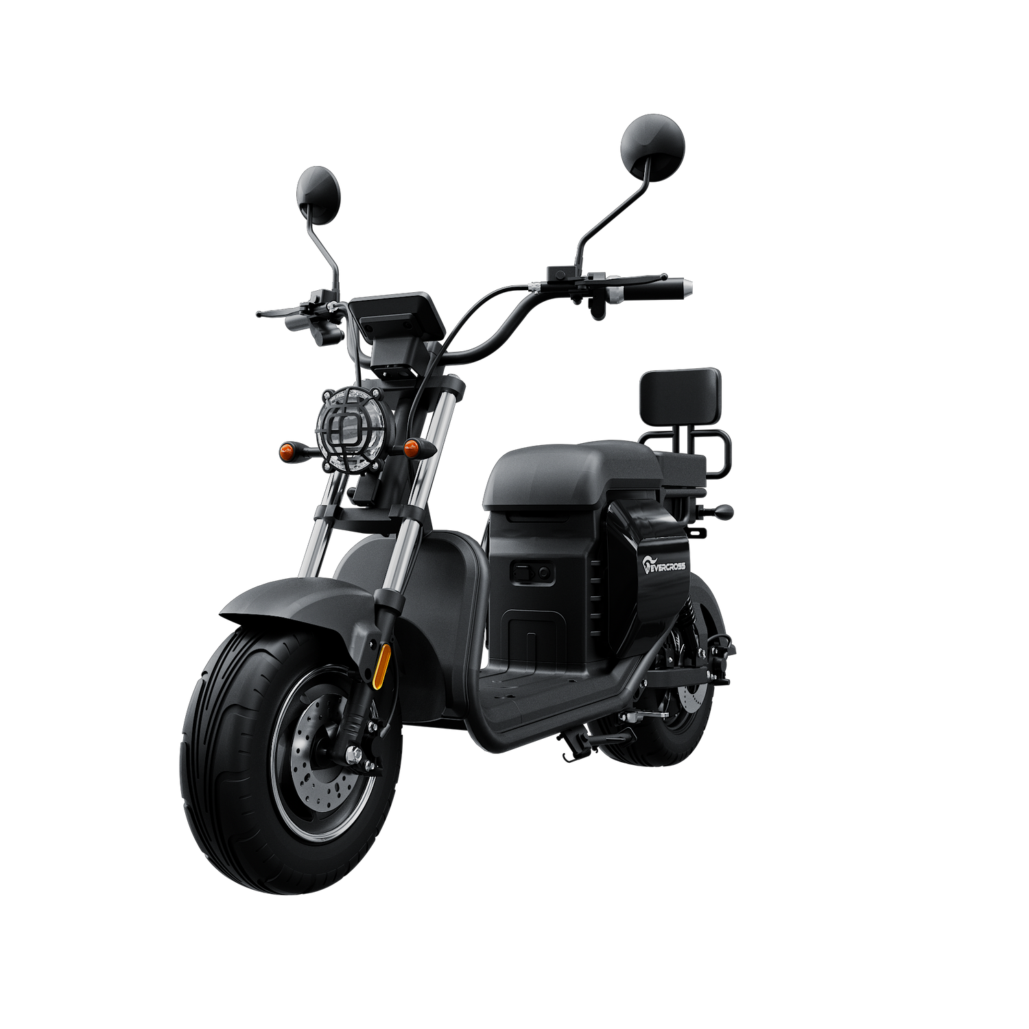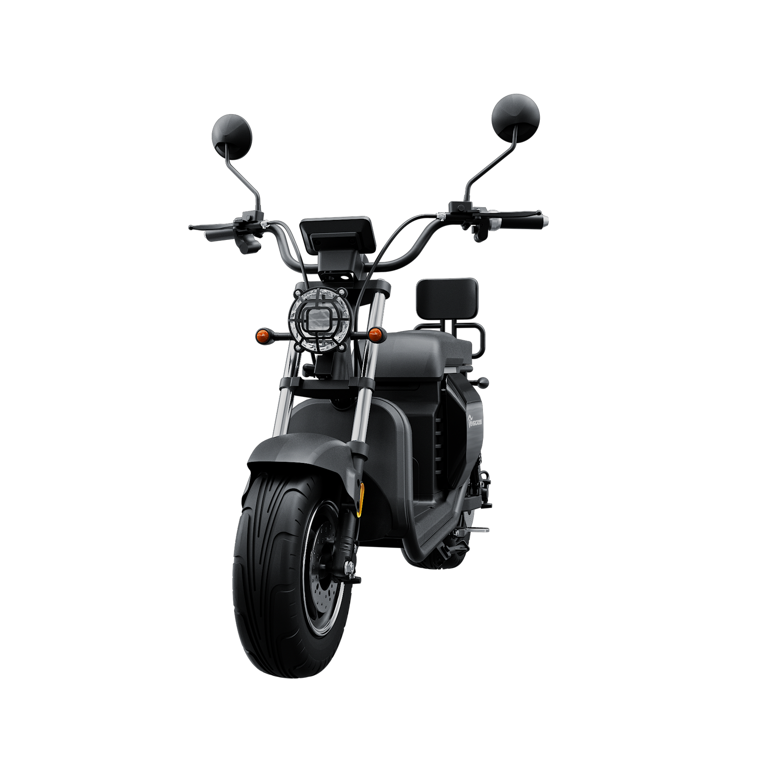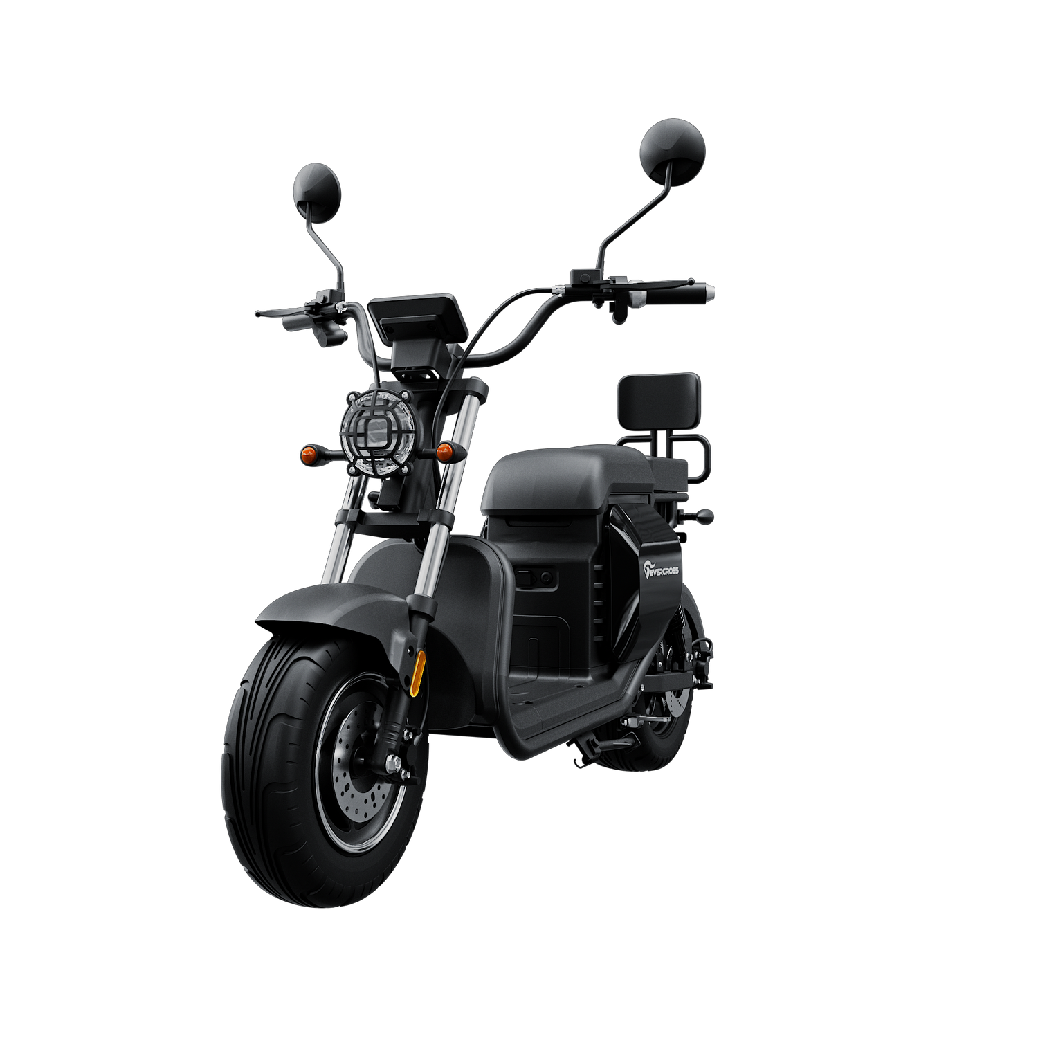 Das E-Motorroller ist mit einem leistungsstarken 2000W-Motor ausgestattet, der problemlos eine Höchstgeschwindigkeit von 45 km/h erreicht, selbst mit zwei Erwachsenen an Bord. Die Scheibenbremsen vorne und hinten bieten eine ausgezeichnete Verzögerung, und die Teleskopgabel sowie die hinteren Stoßdämpfer garantieren ein komfortables Fahrerlebnis, auch auf unebenem Gelände. Drei wählbare Geschwindigkeitsstufen (25/35/45 km/h) sorgen für eine flexible Anpassung an unterschiedliche Fahrbedingungen.