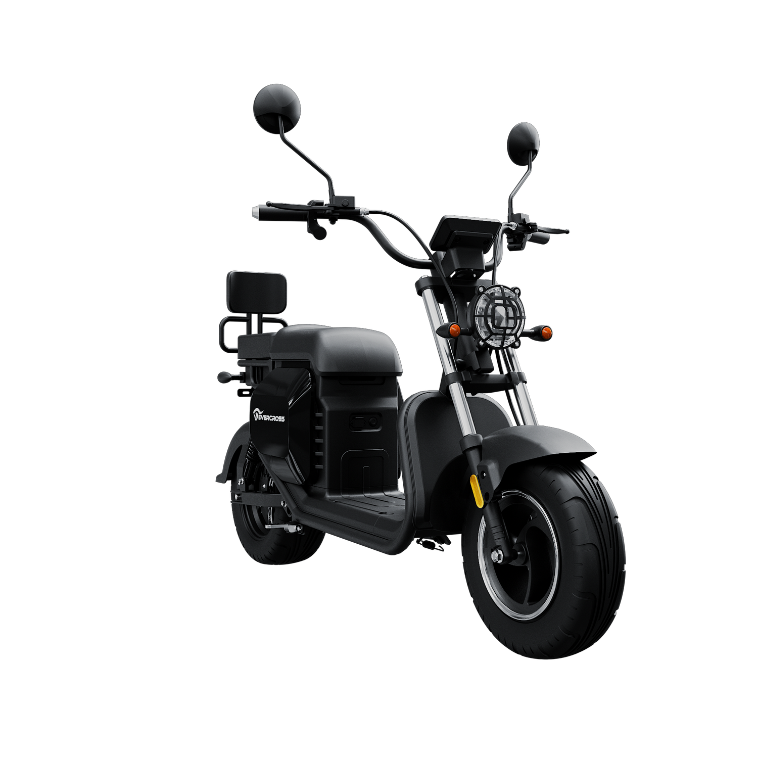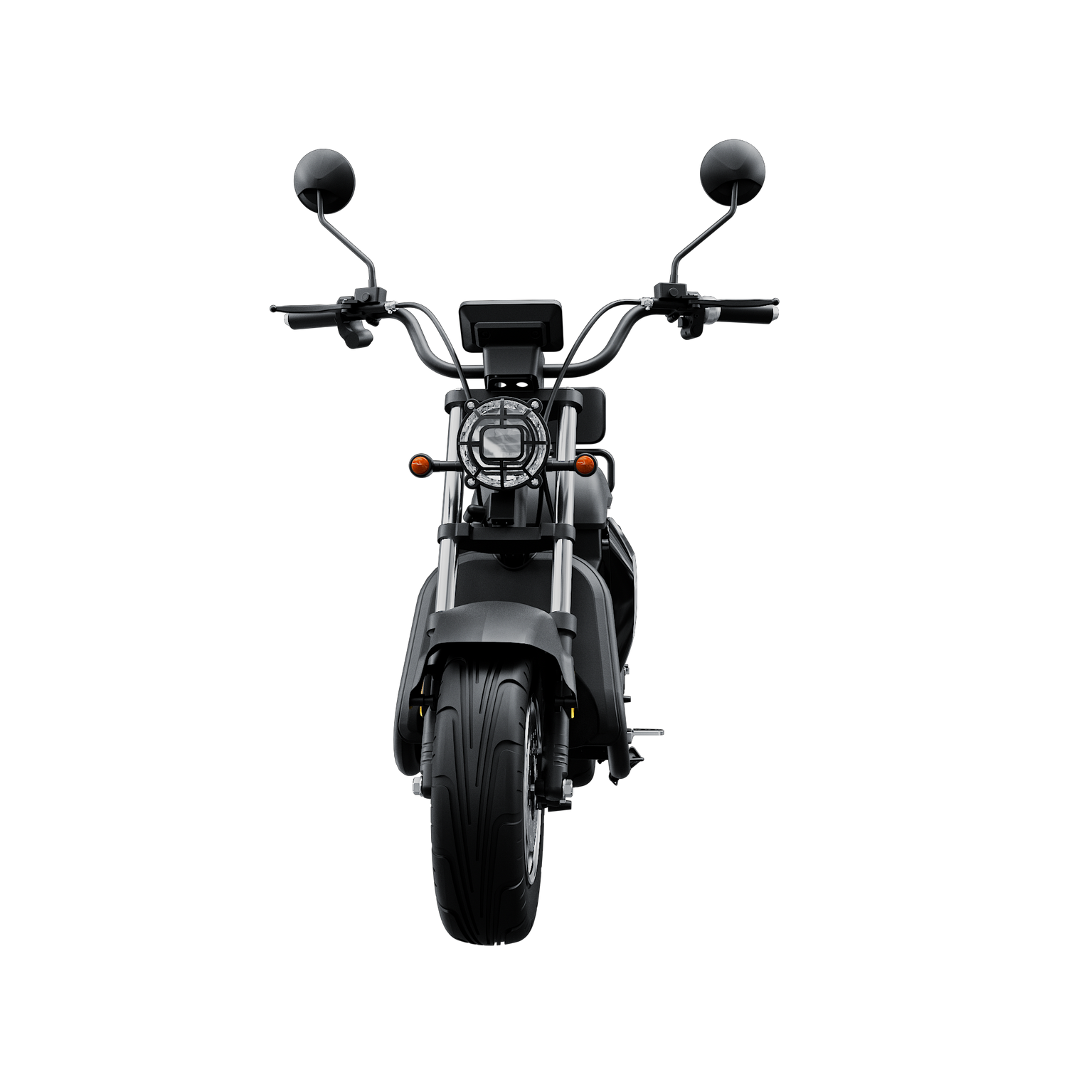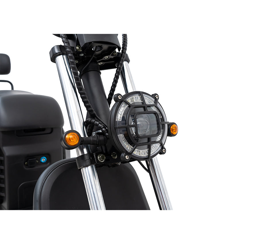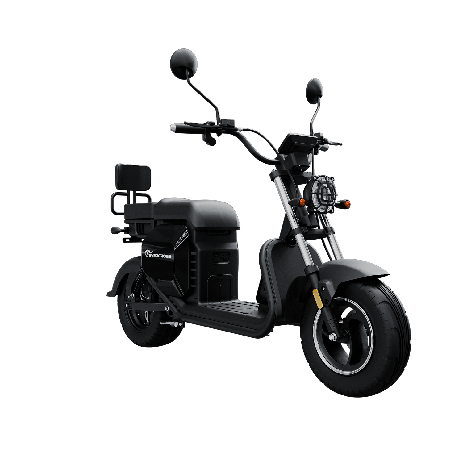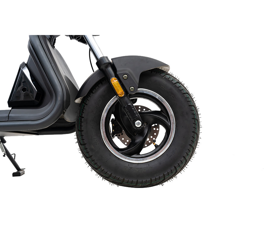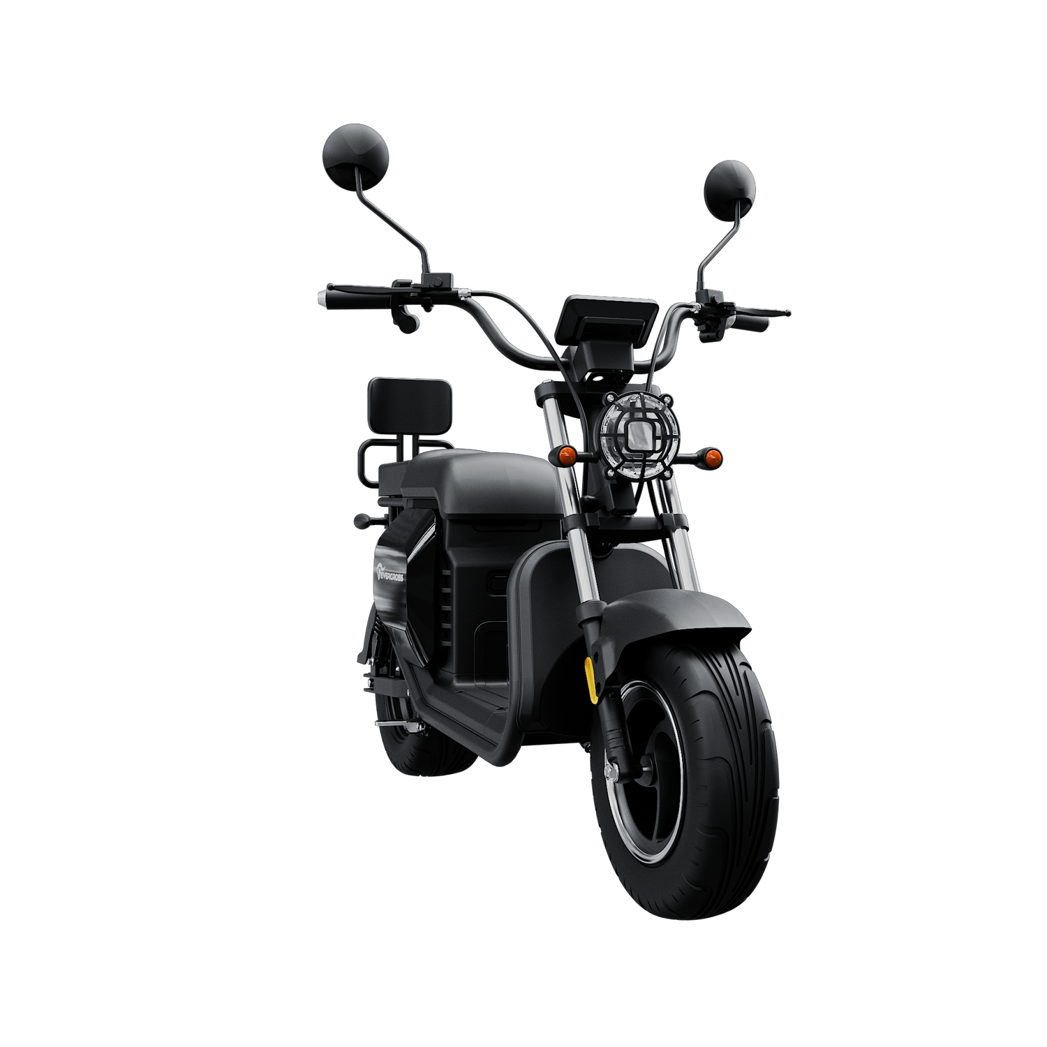 Das E-Motorroller ist mit einem leistungsstarken 2000W-Motor ausgestattet, der problemlos eine Höchstgeschwindigkeit von 45 km/h erreicht, selbst mit zwei Erwachsenen an Bord. Die Scheibenbremsen vorne und hinten bieten eine ausgezeichnete Verzögerung, und die Teleskopgabel sowie die hinteren Stoßdämpfer garantieren ein komfortables Fahrerlebnis, auch auf unebenem Gelände. Drei wählbare Geschwindigkeitsstufen (25/35/45 km/h) sorgen für eine flexible Anpassung an unterschiedliche Fahrbedingungen.