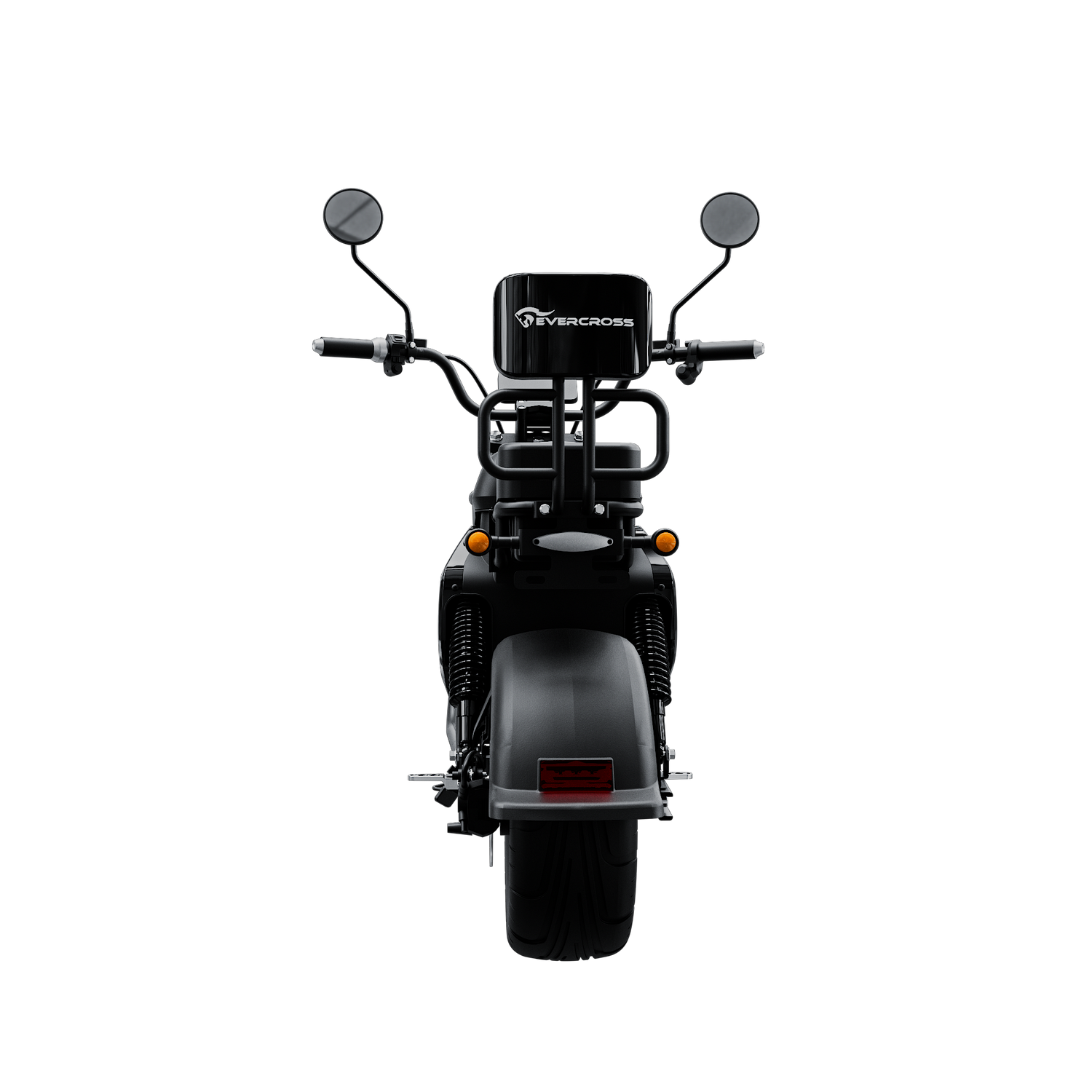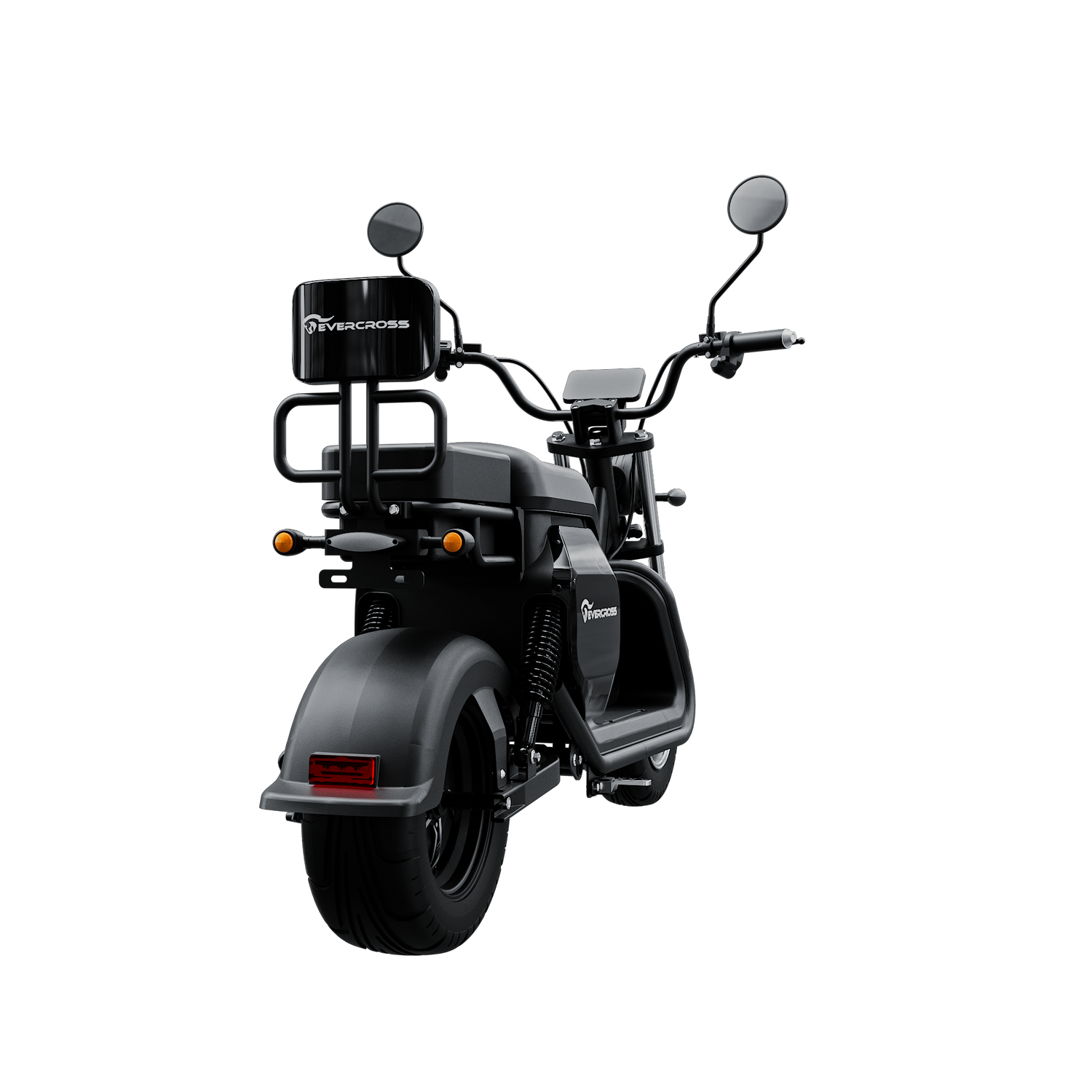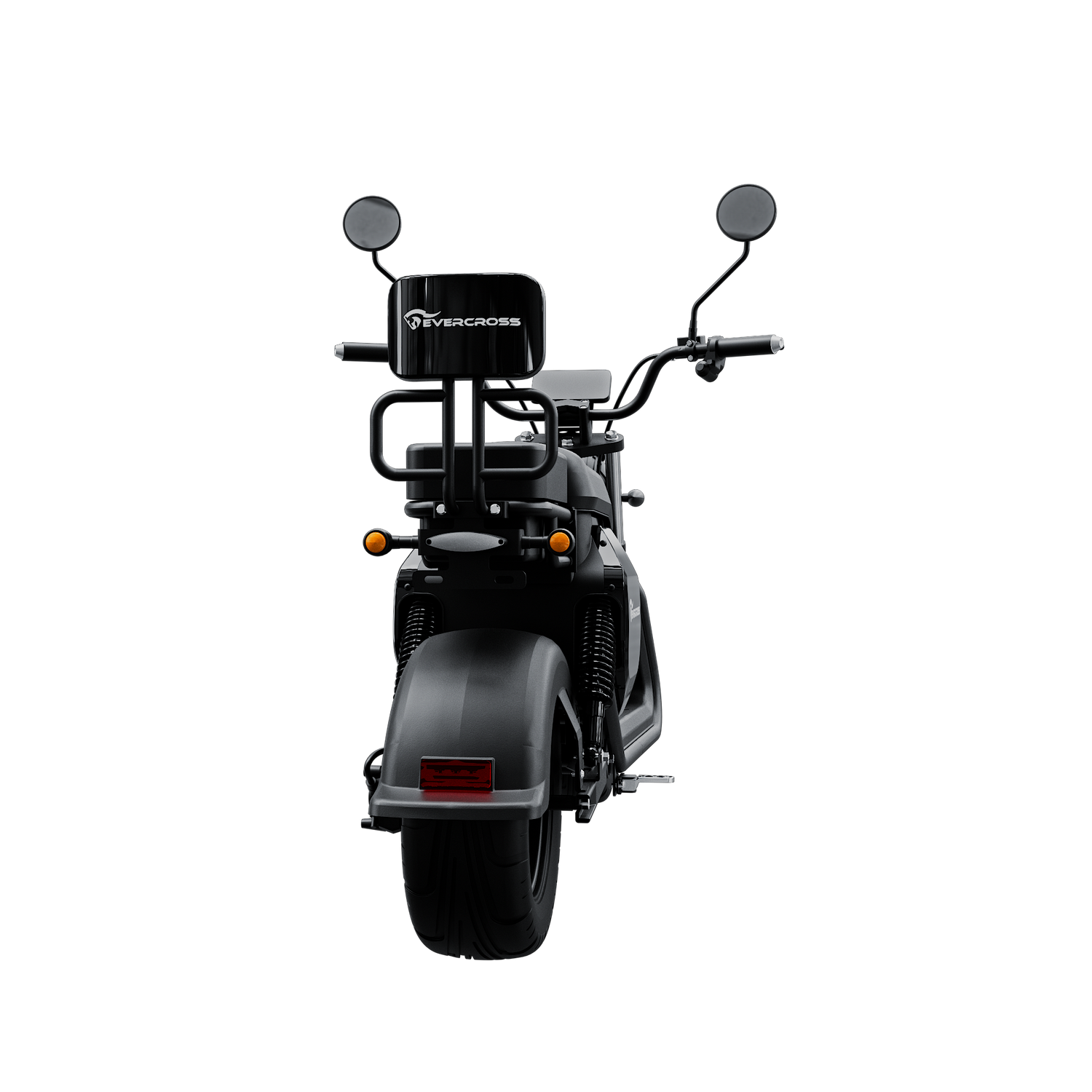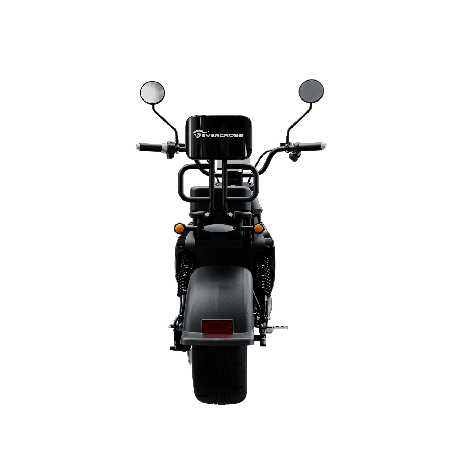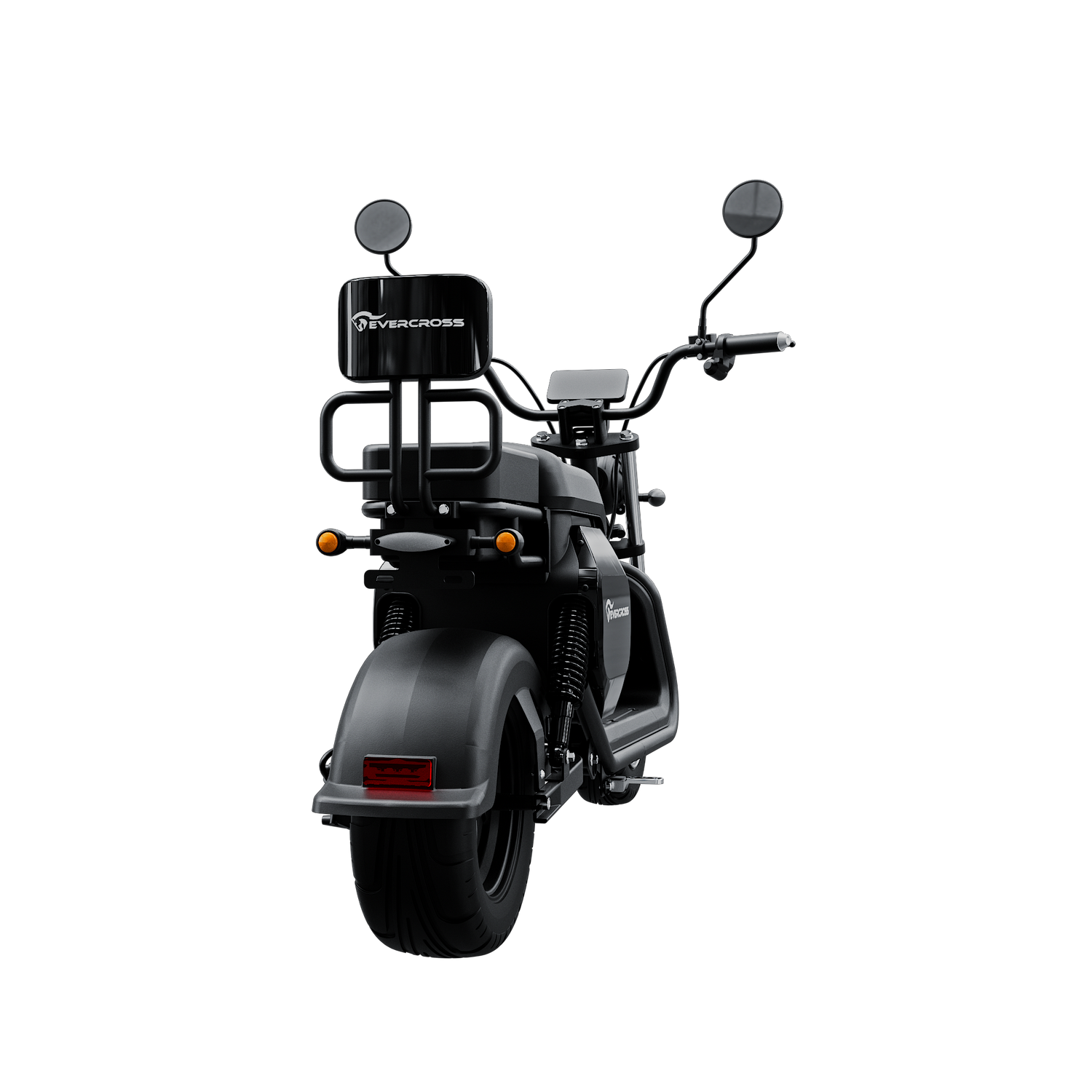 Das EVERCROSS 702 E-Motorroller kombiniert stilvolles Chopper-Design mit modernen Funktionen. Die breiten Reifen sorgen nicht nur für ein ruhiges und stabiles Fahrerlebnis, sondern auch für zusätzliche Aufmerksamkeit auf der Straße. Der hohe Lenker, der bequem gepolsterte Sitz, die Rückenlehne und breite Fußstützen bieten maximalen Komfort für Fahrer und Beifahrer.