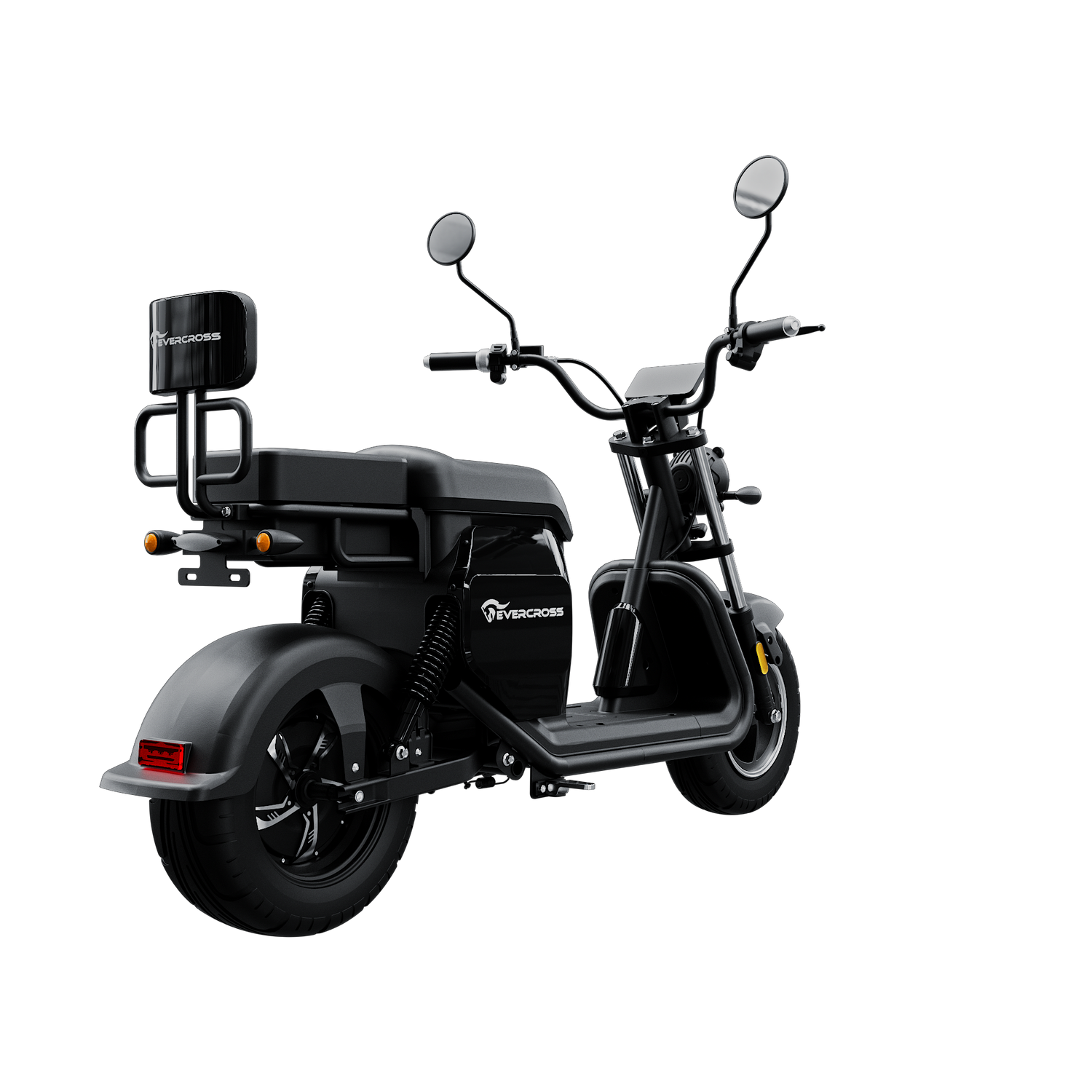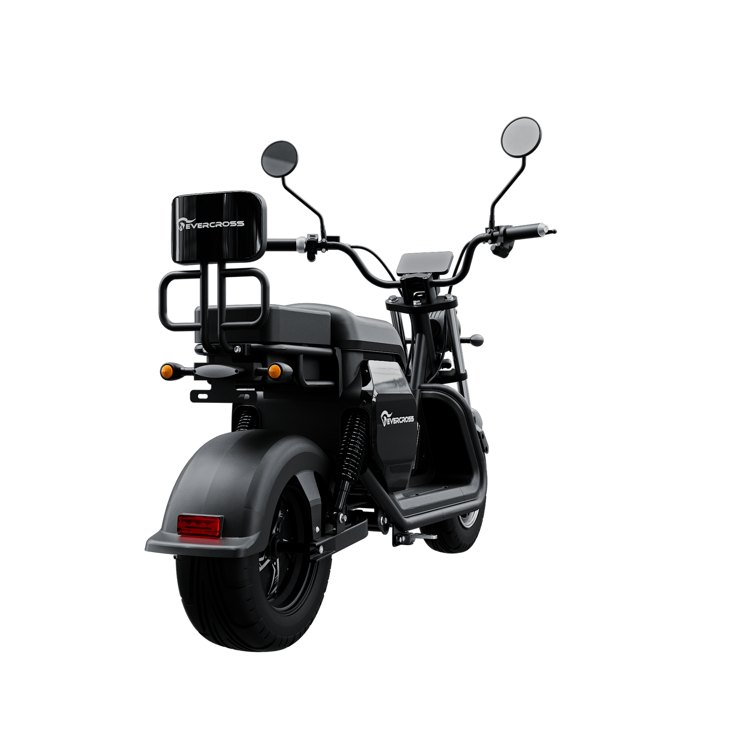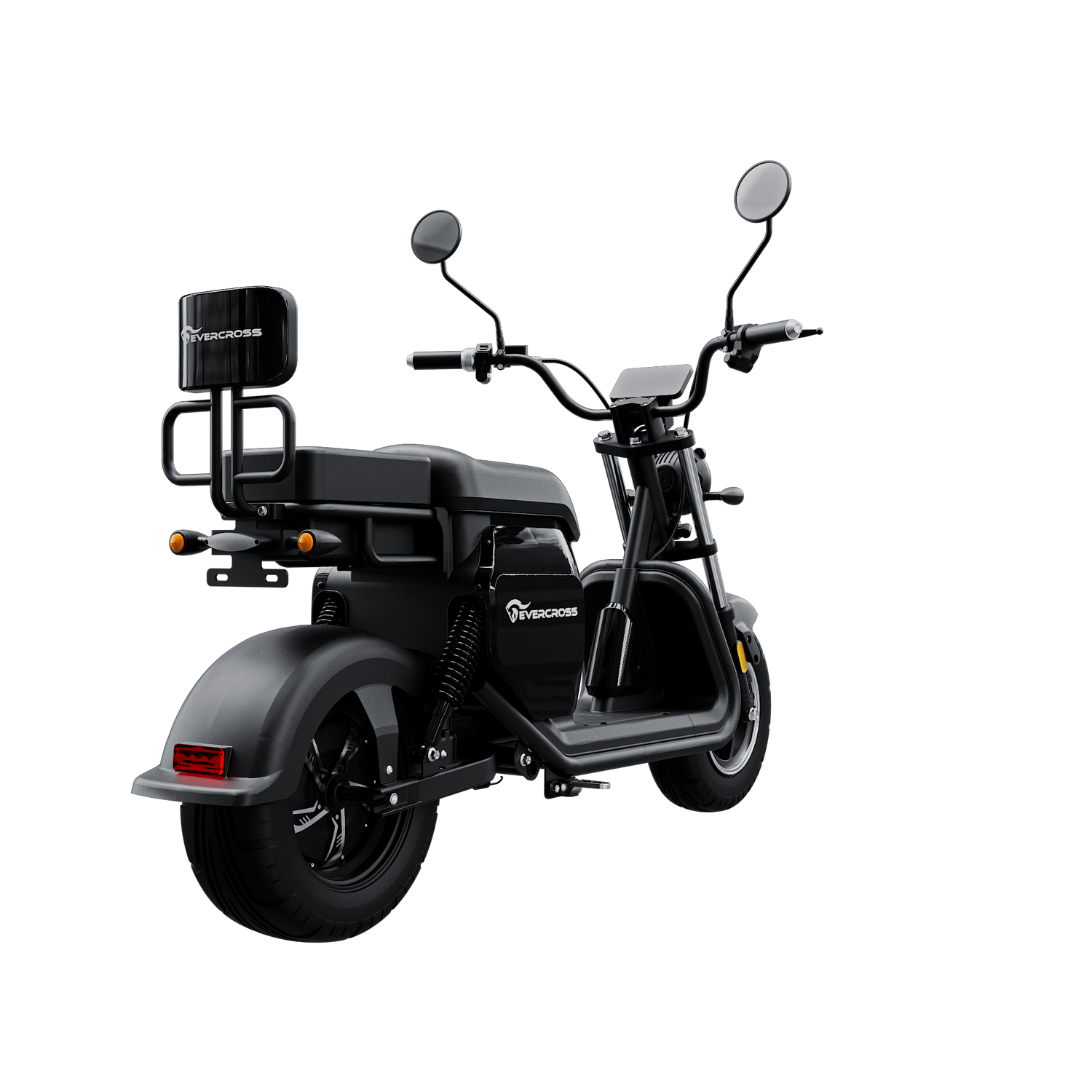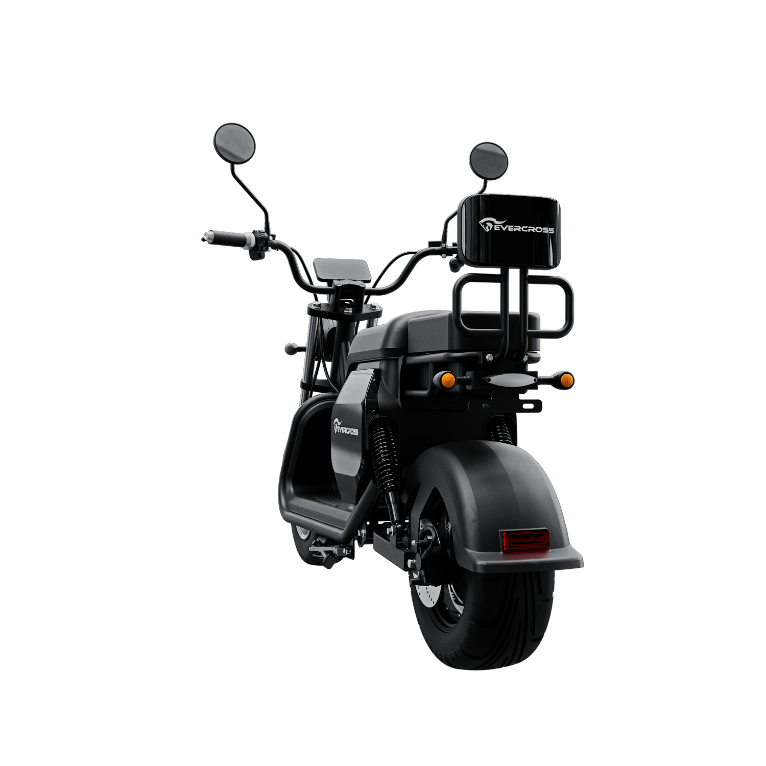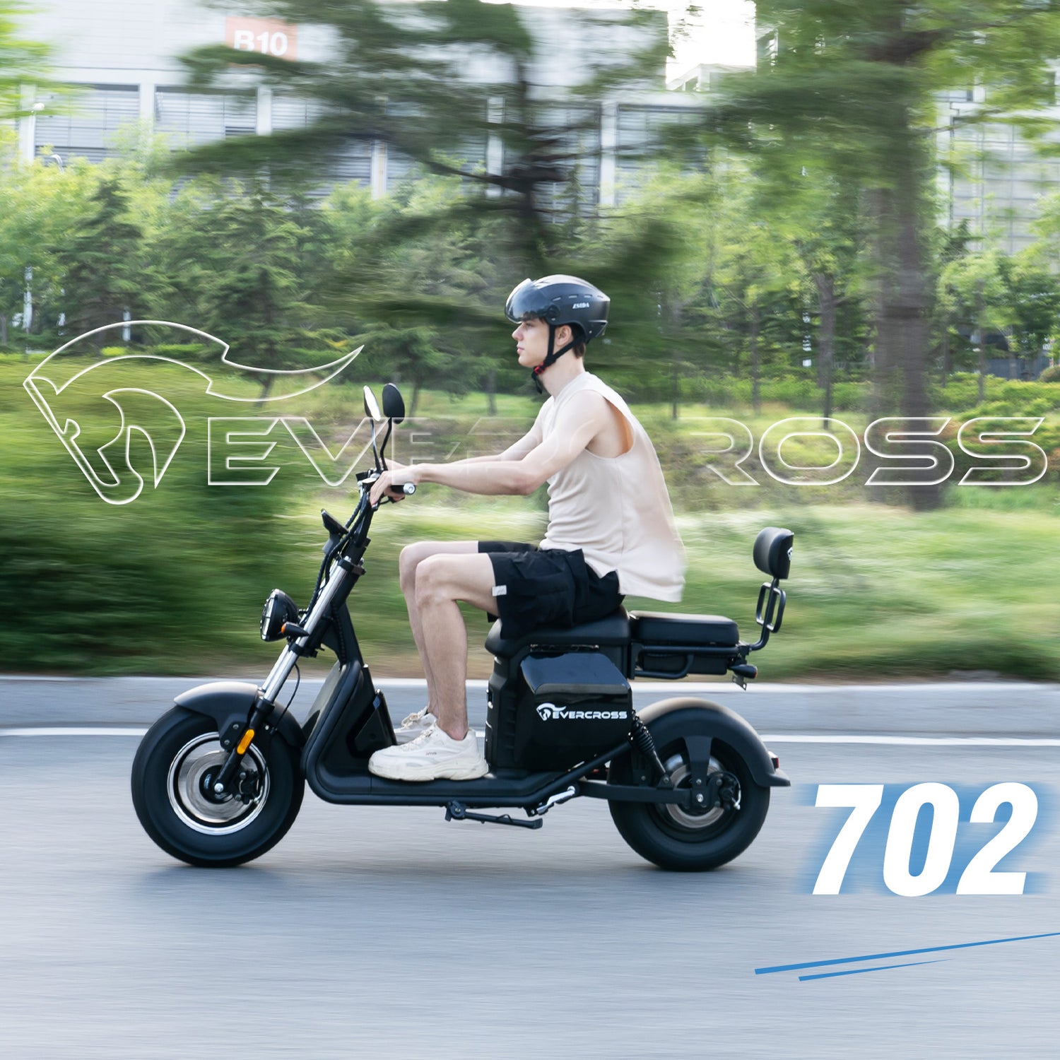 Das EVERCROSS 702 E-Motorroller kombiniert stilvolles Chopper-Design mit modernen Funktionen. Die breiten Reifen sorgen nicht nur für ein ruhiges und stabiles Fahrerlebnis, sondern auch für zusätzliche Aufmerksamkeit auf der Straße. Der hohe Lenker, der bequem gepolsterte Sitz, die Rückenlehne und breite Fußstützen bieten maximalen Komfort für Fahrer und Beifahrer.
