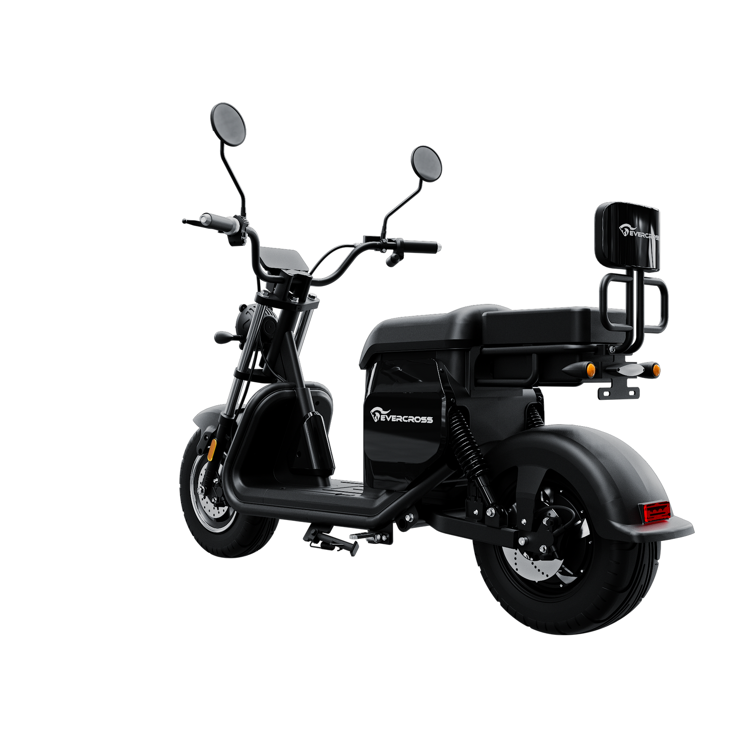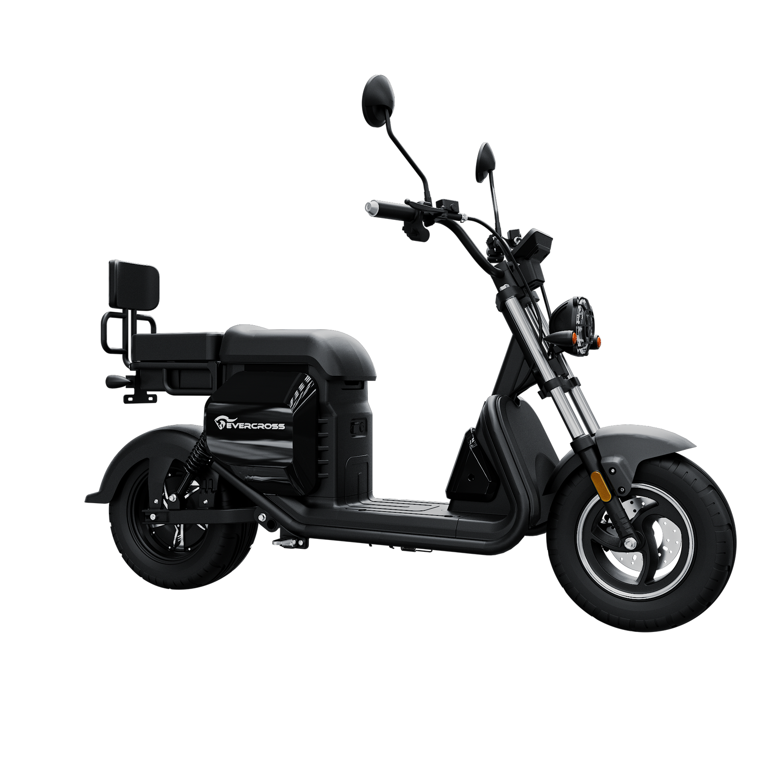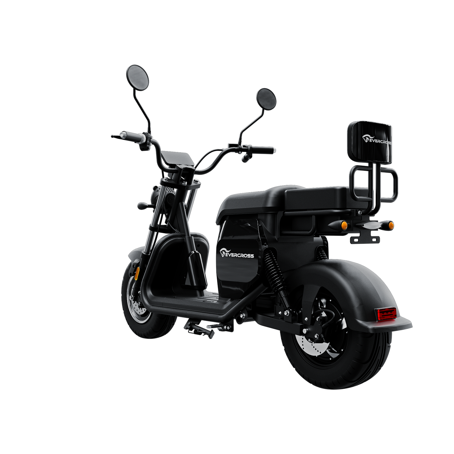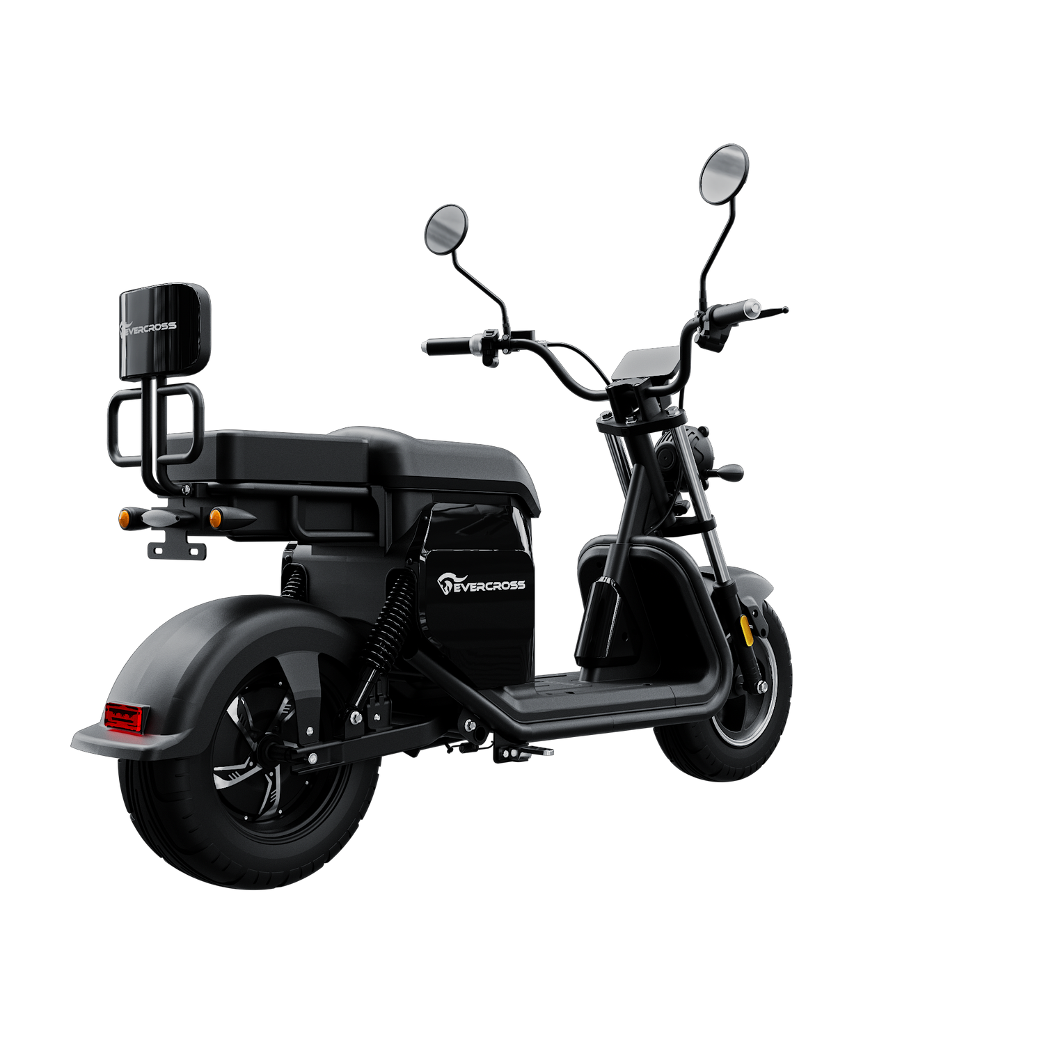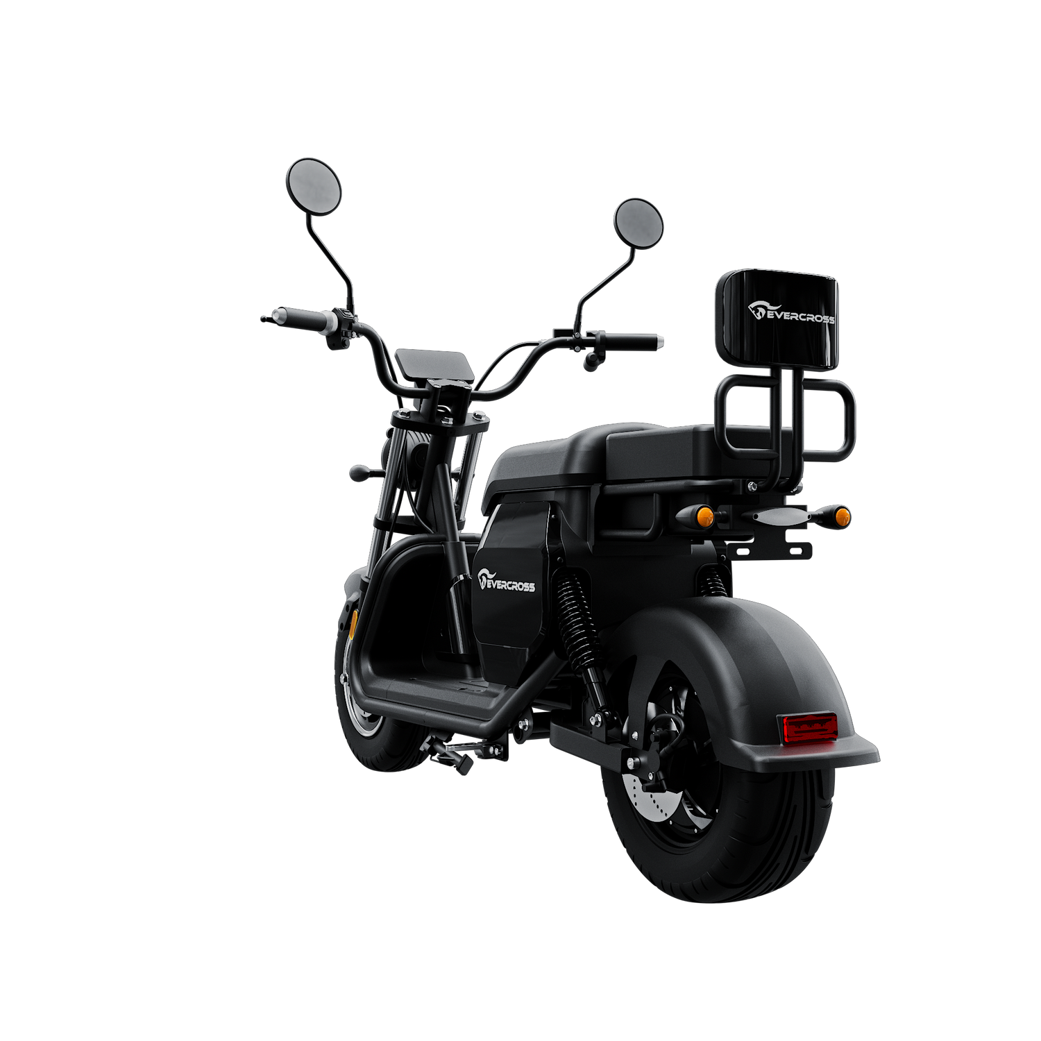 Das EVERCROSS 702 E-Motorroller kombiniert stilvolles Chopper-Design mit modernen Funktionen. Die breiten Reifen sorgen nicht nur für ein ruhiges und stabiles Fahrerlebnis, sondern auch für zusätzliche Aufmerksamkeit auf der Straße. Der hohe Lenker, der bequem gepolsterte Sitz, die Rückenlehne und breite Fußstützen bieten maximalen Komfort für Fahrer und Beifahrer.