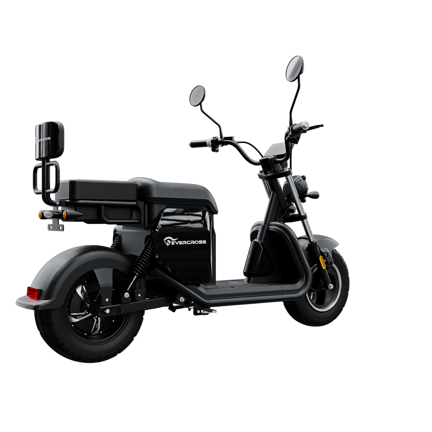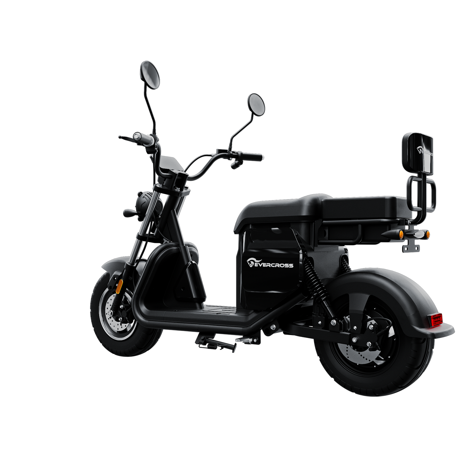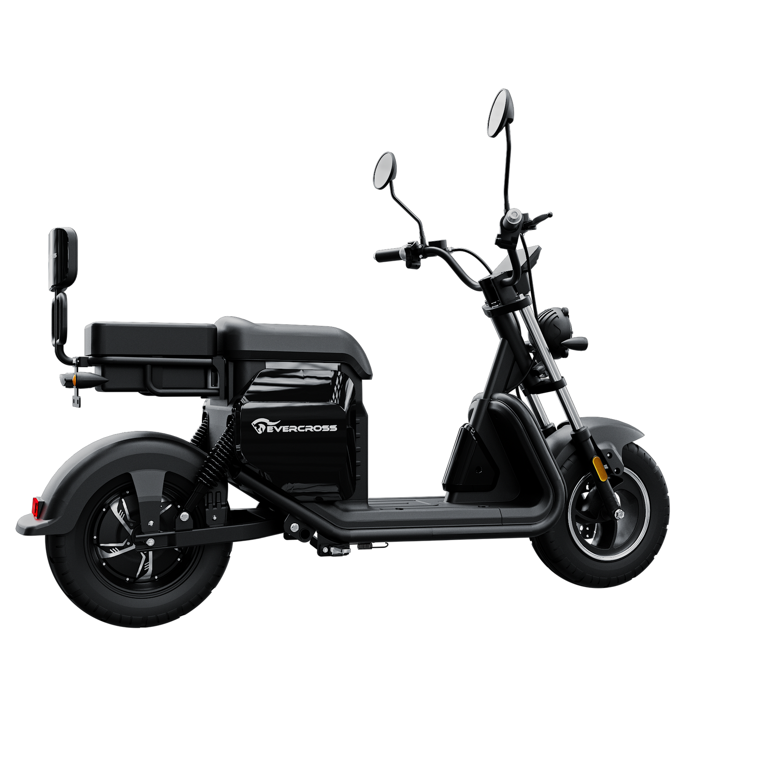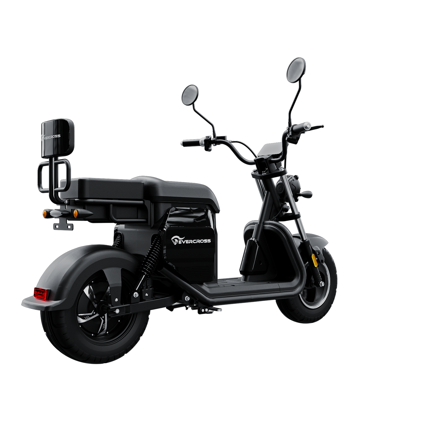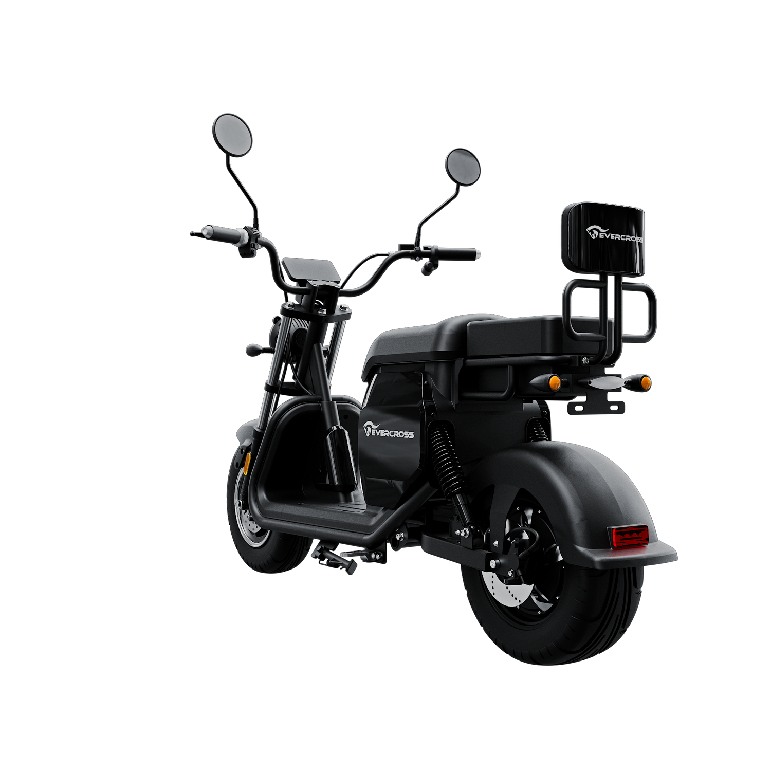 Das EVERCROSS 702 E-Motorroller kombiniert stilvolles Chopper-Design mit modernen Funktionen. Die breiten Reifen sorgen nicht nur für ein ruhiges und stabiles Fahrerlebnis, sondern auch für zusätzliche Aufmerksamkeit auf der Straße. Der hohe Lenker, der bequem gepolsterte Sitz, die Rückenlehne und breite Fußstützen bieten maximalen Komfort für Fahrer und Beifahrer.