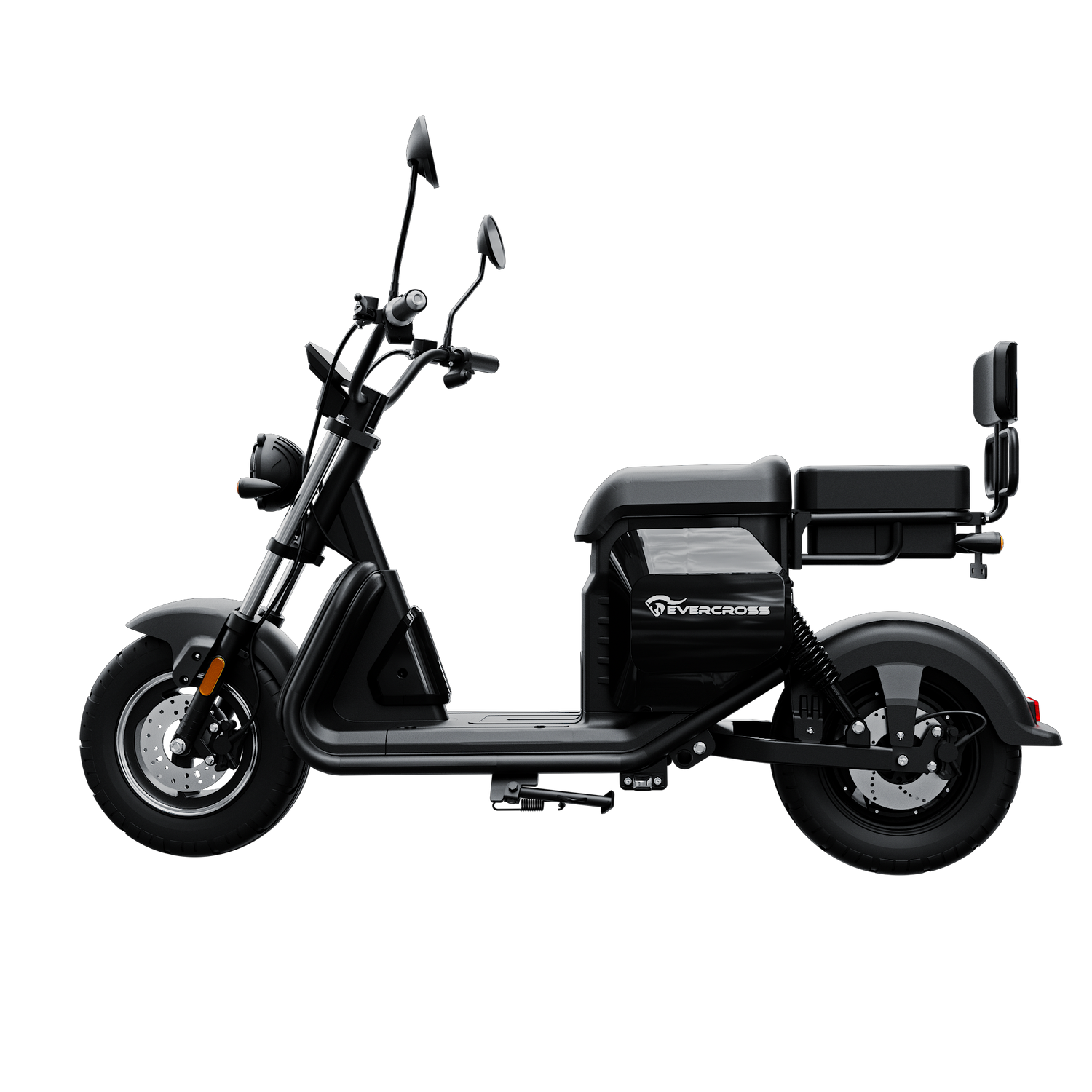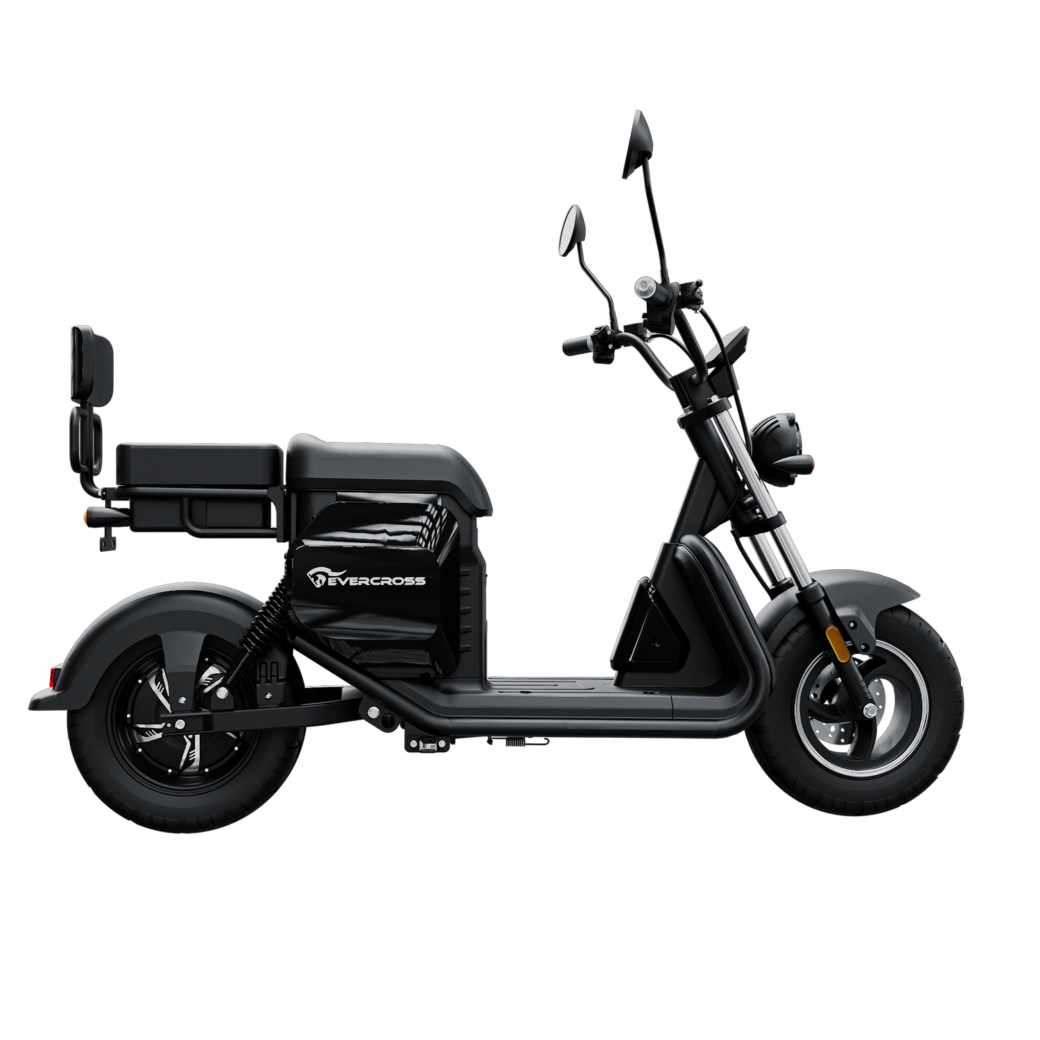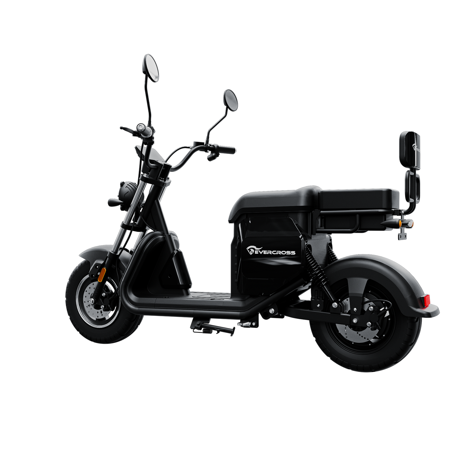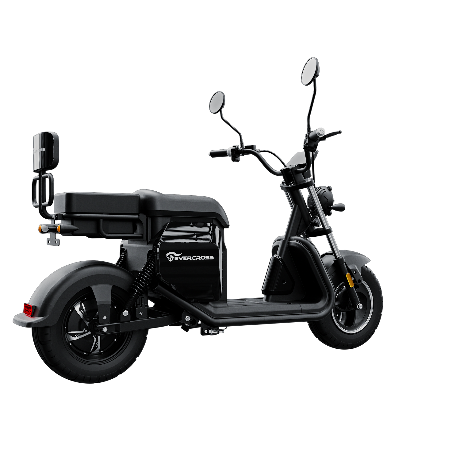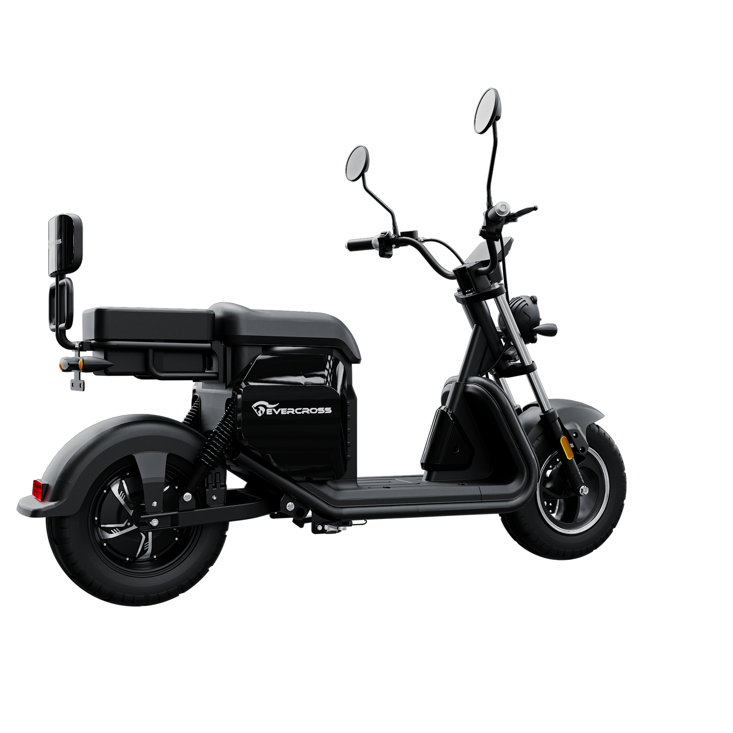 Das EVERCROSS 702 E-Motorroller kombiniert stilvolles Chopper-Design mit modernen Funktionen. Die breiten Reifen sorgen nicht nur für ein ruhiges und stabiles Fahrerlebnis, sondern auch für zusätzliche Aufmerksamkeit auf der Straße. Der hohe Lenker, der bequem gepolsterte Sitz, die Rückenlehne und breite Fußstützen bieten maximalen Komfort für Fahrer und Beifahrer.