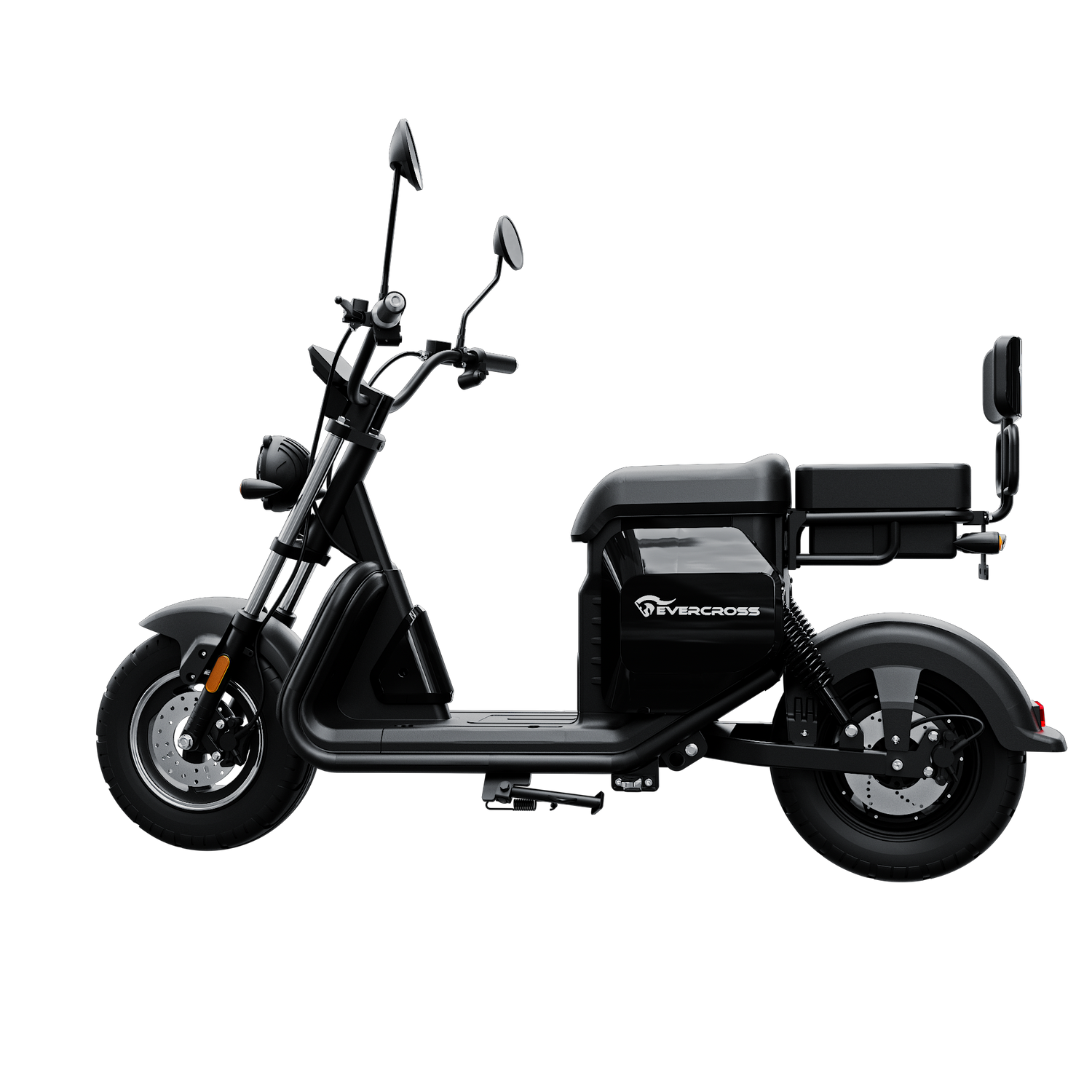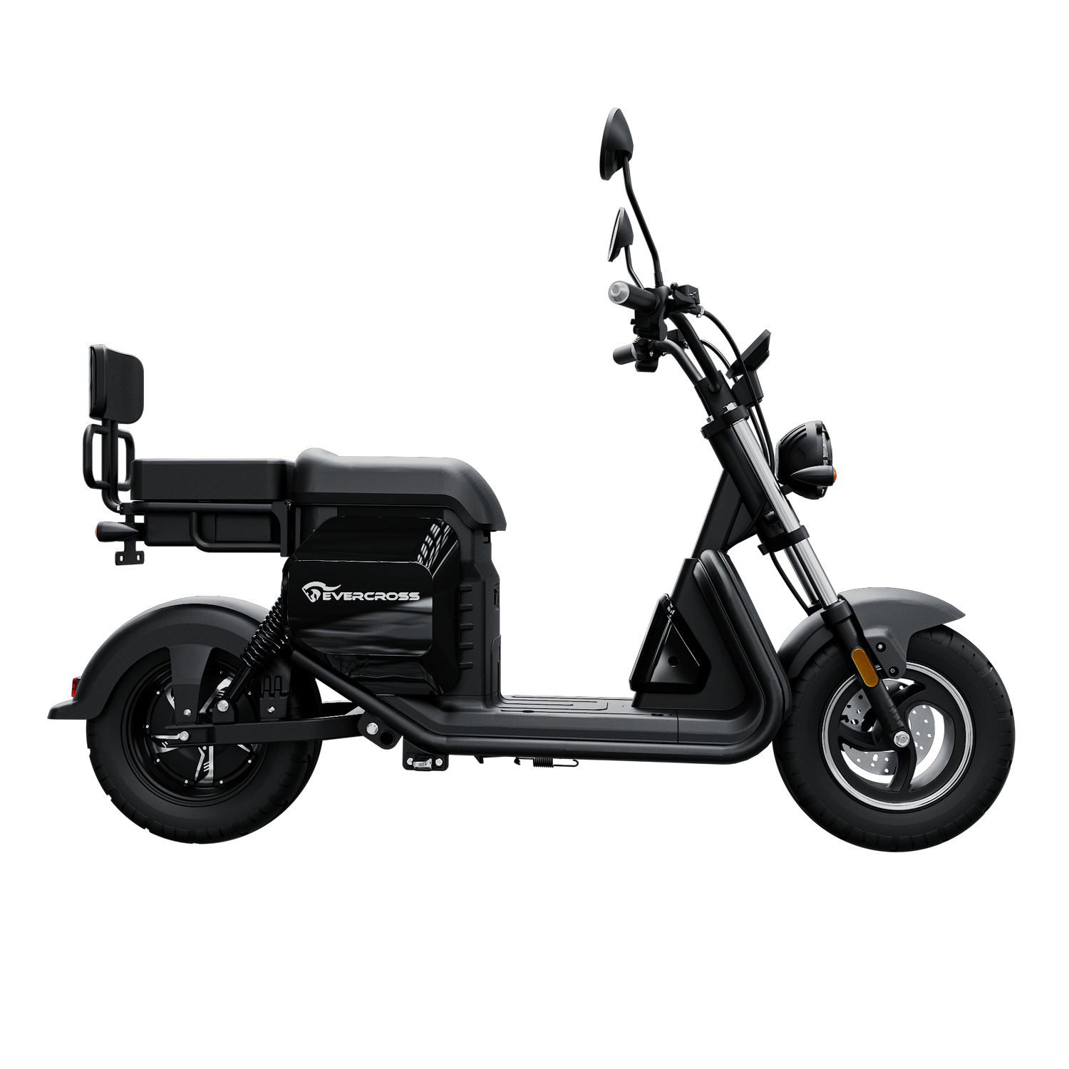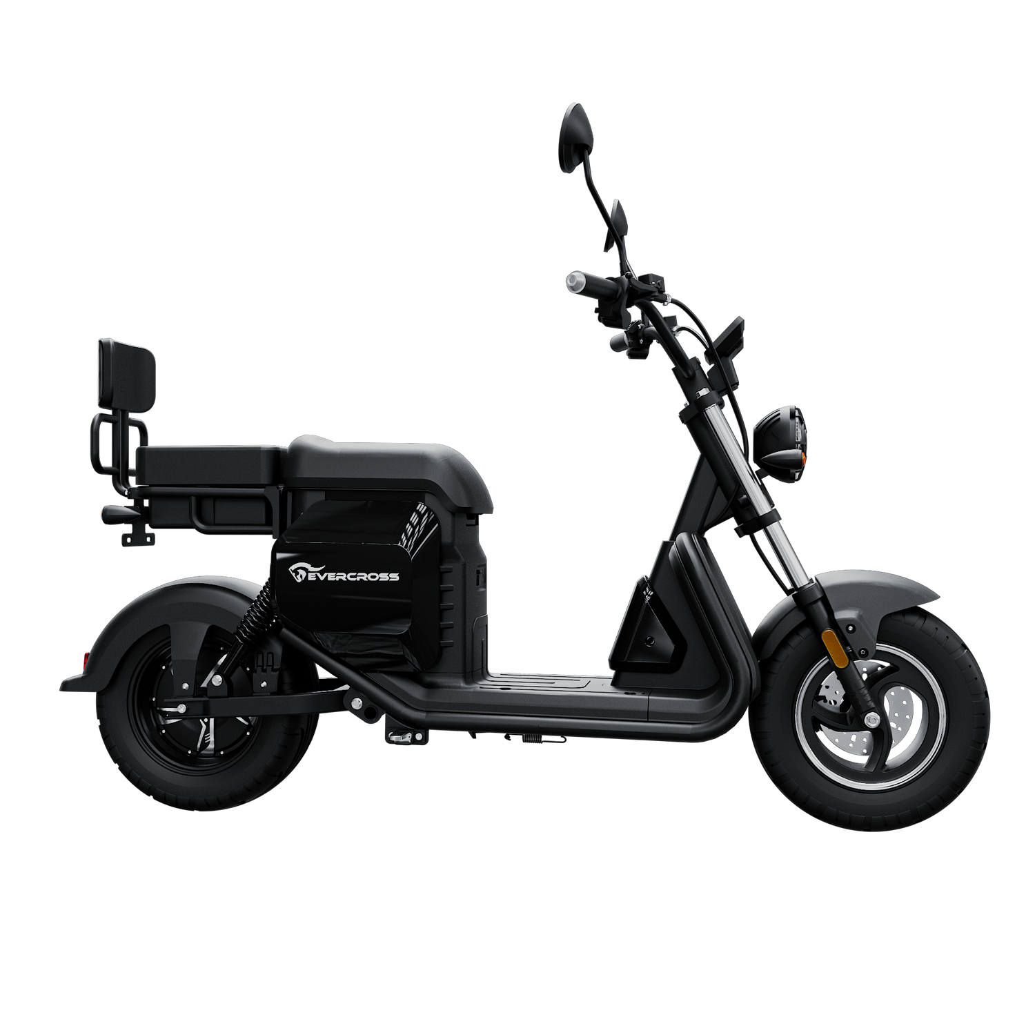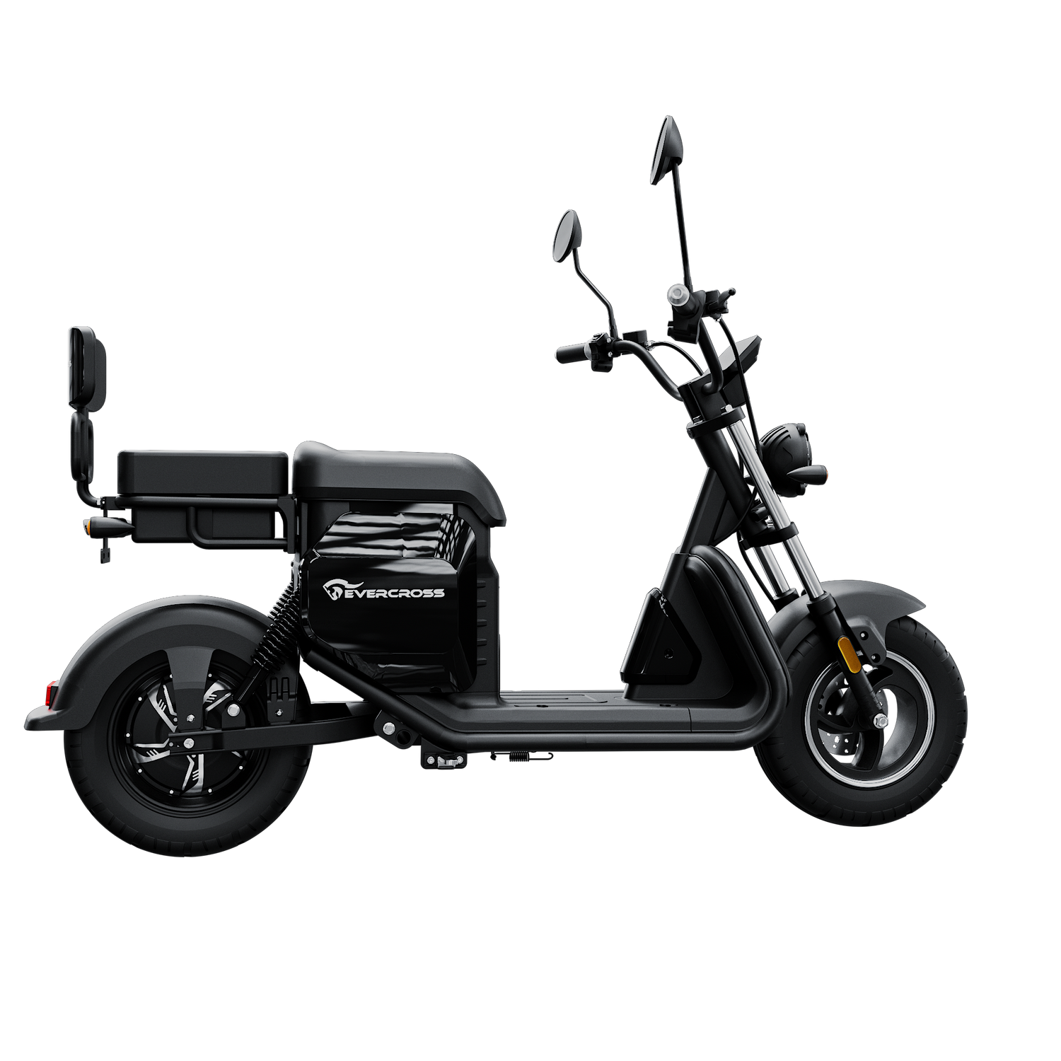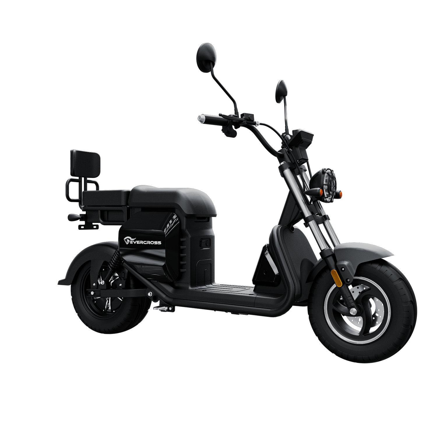 Das EVERCROSS 702 E-Motorroller kombiniert stilvolles Chopper-Design mit modernen Funktionen. Die breiten Reifen sorgen nicht nur für ein ruhiges und stabiles Fahrerlebnis, sondern auch für zusätzliche Aufmerksamkeit auf der Straße. Der hohe Lenker, der bequem gepolsterte Sitz, die Rückenlehne und breite Fußstützen bieten maximalen Komfort für Fahrer und Beifahrer.