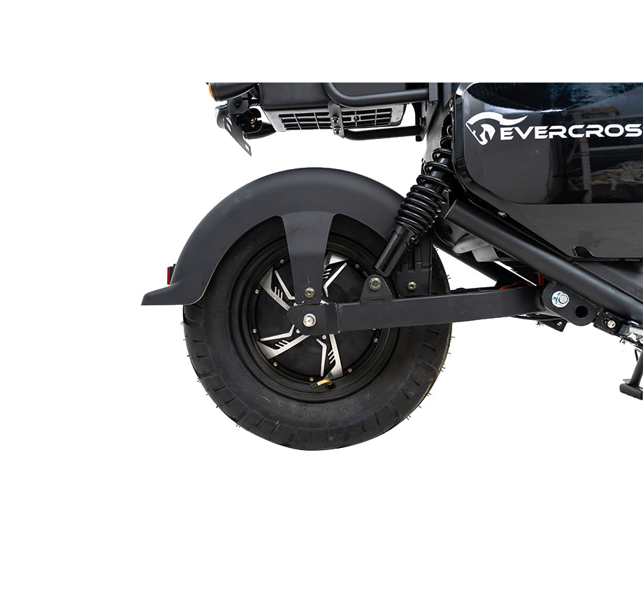 Mit dem EVERCROSS 702 E-Motorroller fahren Sie völlig emissionsfrei – kein Lärm, keine Abgase. Das macht dieses Motorrad nicht nur umweltfreundlich, sondern auch extrem kosteneffizient. Die breiten Reifen sorgen für starken Grip und gewährleisten gleichzeitig eine leise und angenehme Fahrt.