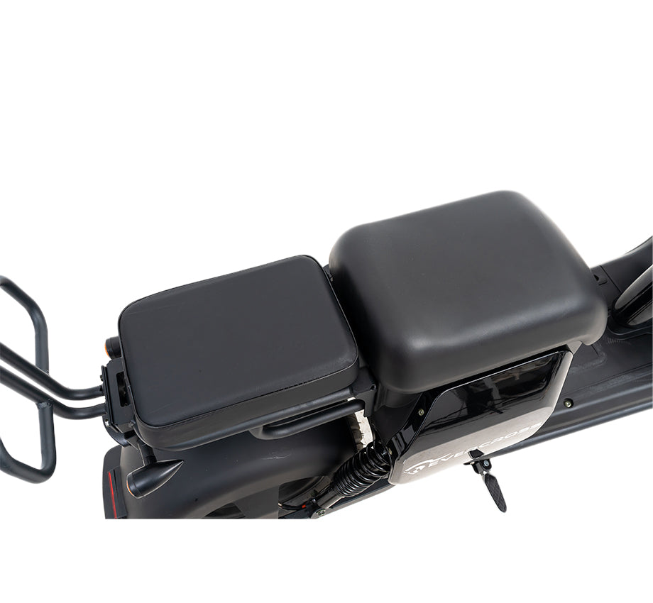 Dual disc brakes + front/rear shock absorbers ensure safe comfort.