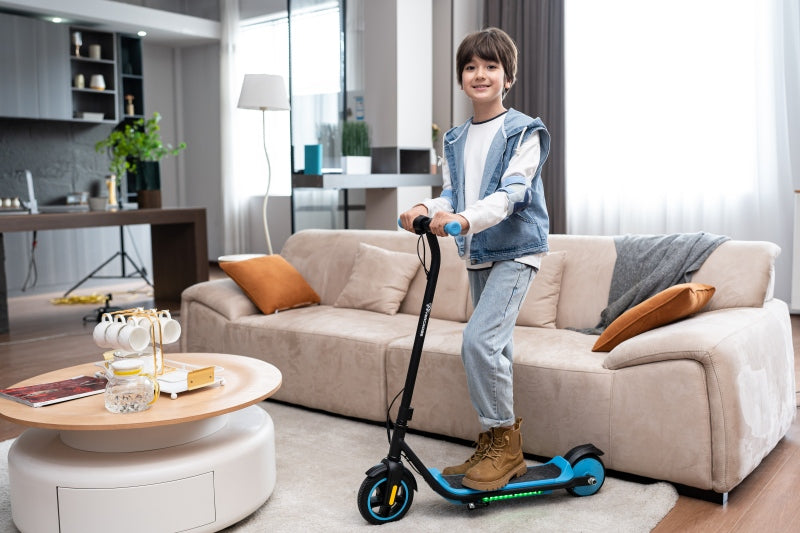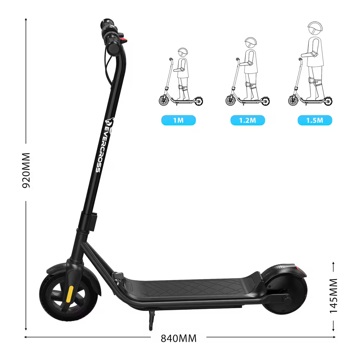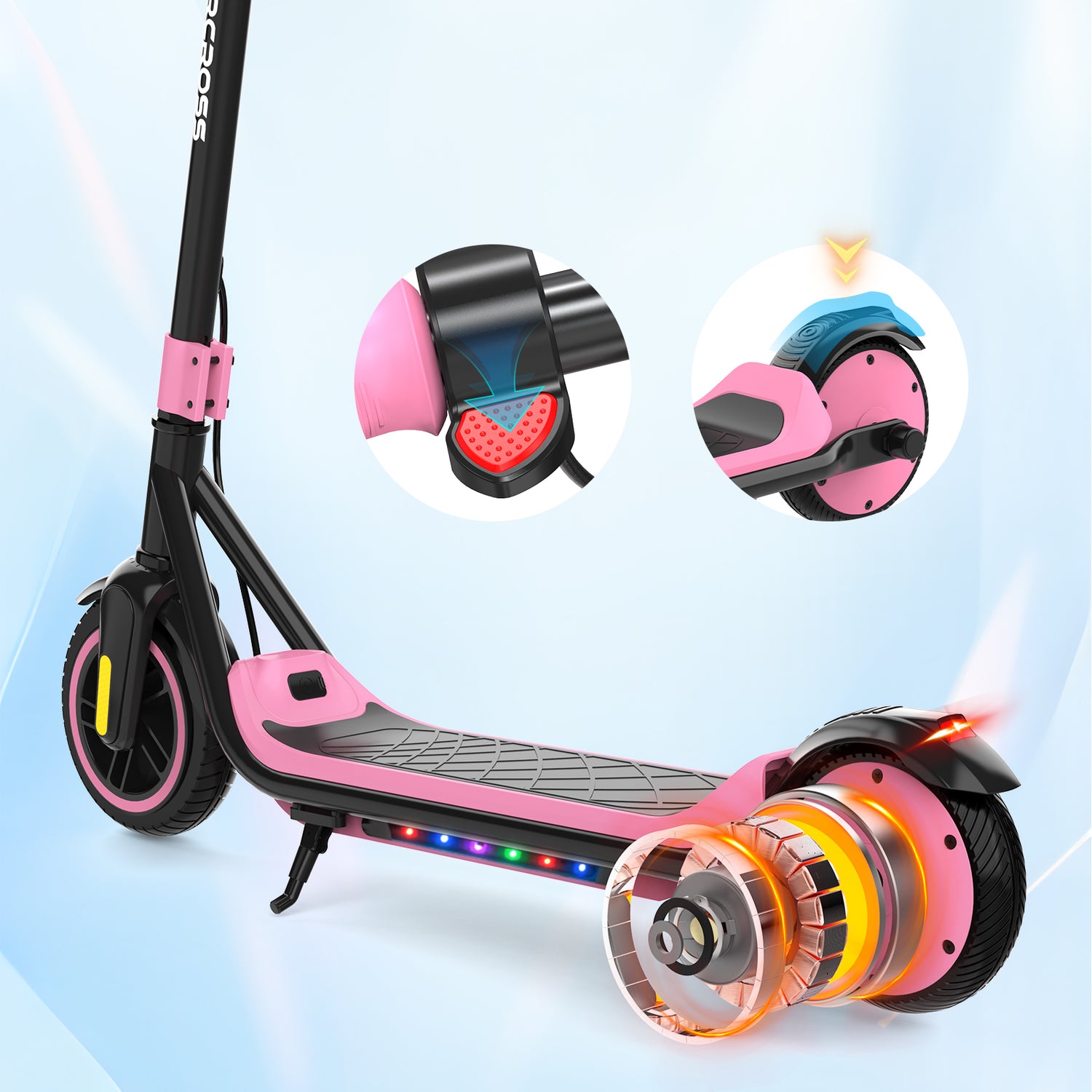 Powered by a 150W quiet motor, the E6 offers three adjustable speeds (8 km/h, 12 km/h, 16 km/h). Kids can start slow and gradually adapt, ensuring both fun and safety.