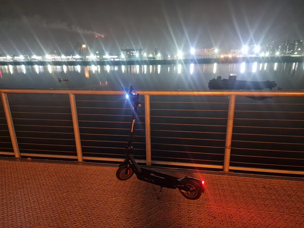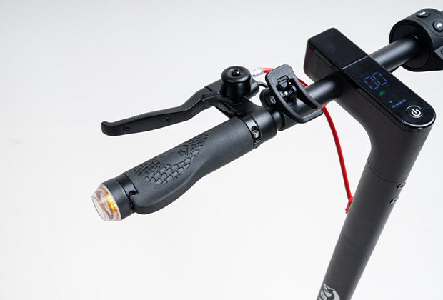 The EV10K PRO scooter is equipped with an intuitive LED dashboard that shows speed, riding mode, cruise control, Bluetooth connection, and headlight status. All functions can be controlled easily with a single button.