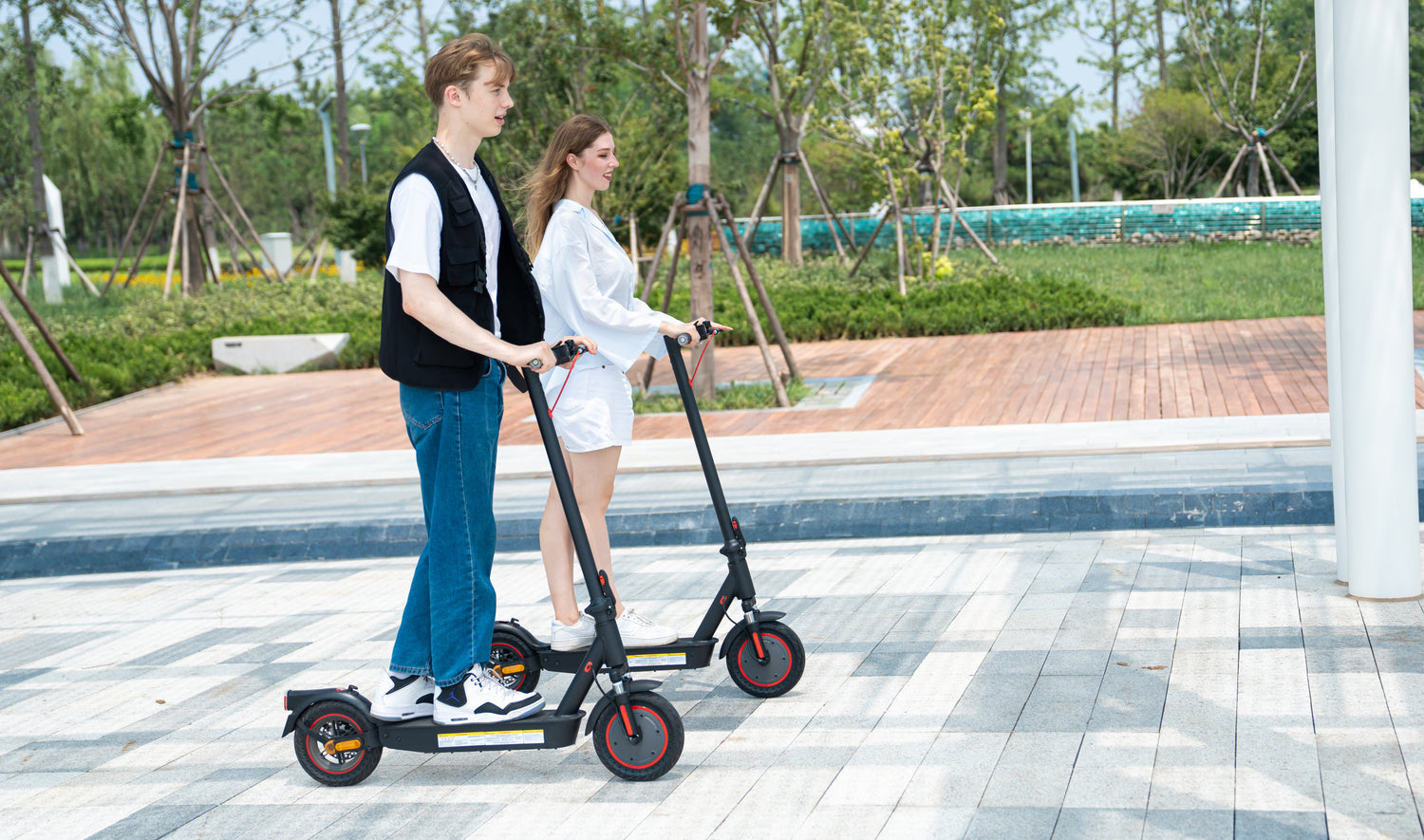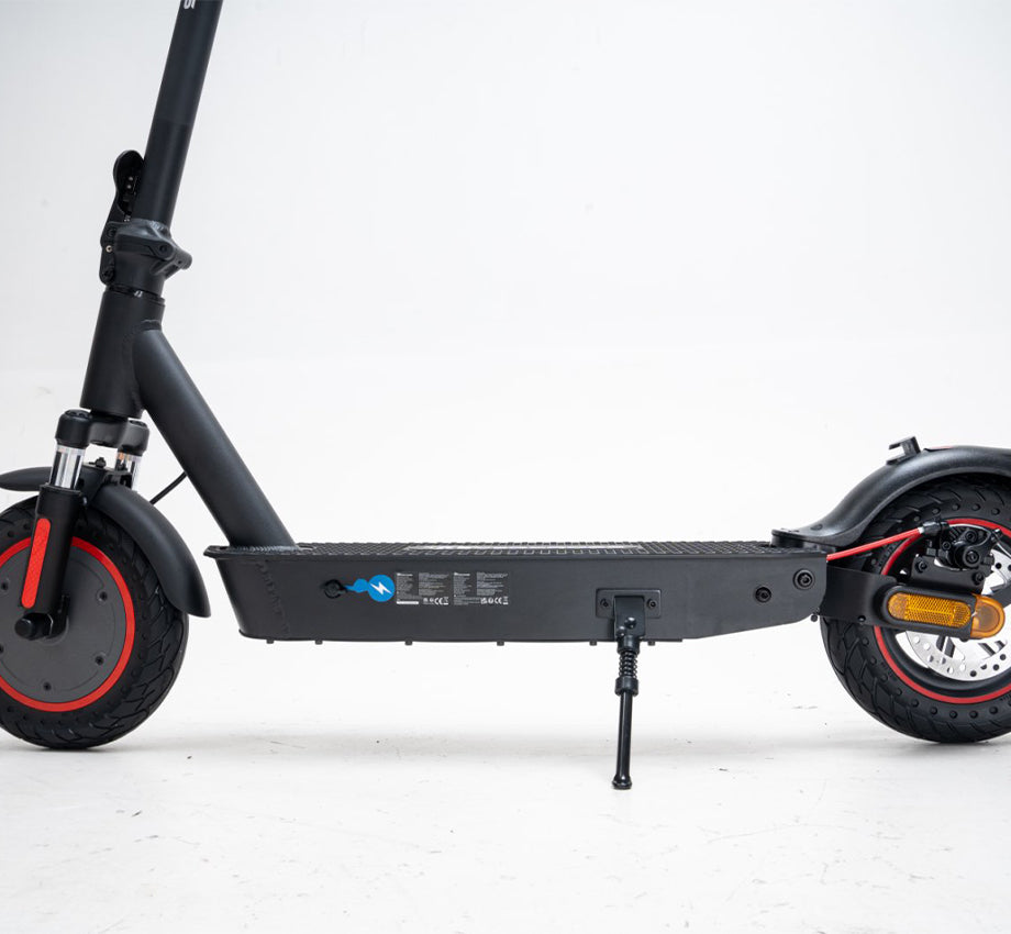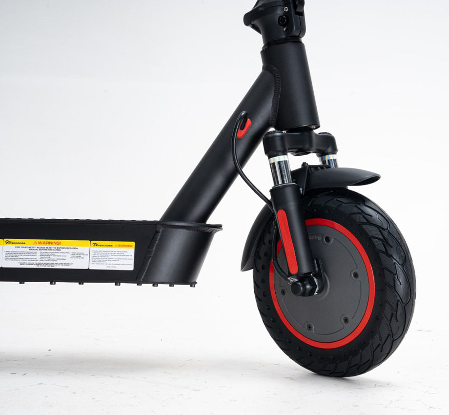 Equipped with front and rear shock absorbers and 10-inch honeycomb solid tires, the scooter delivers a smooth and comfortable riding experience even on rough roads.