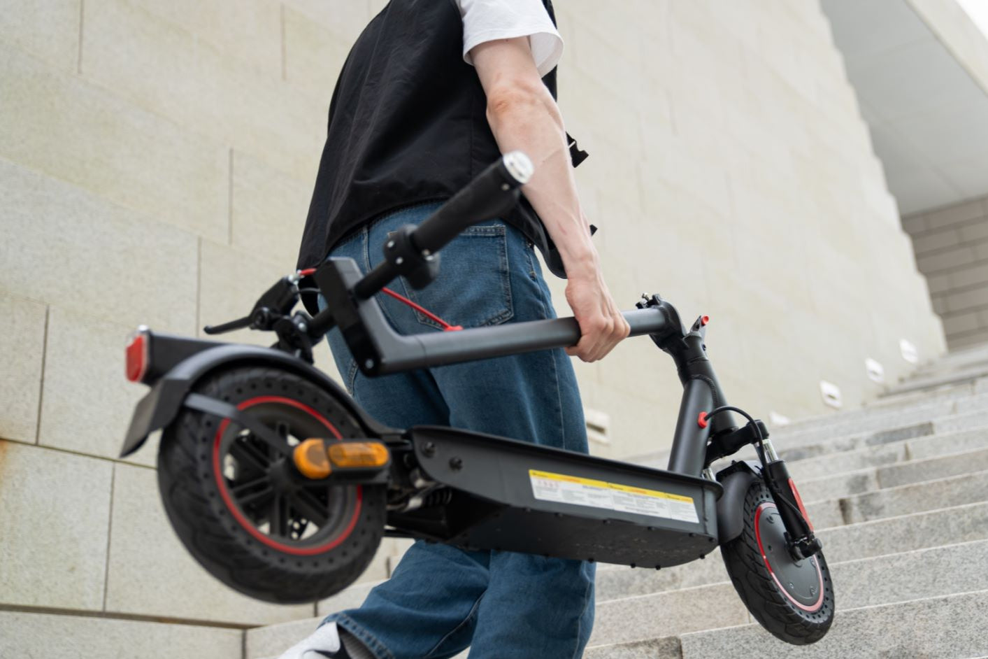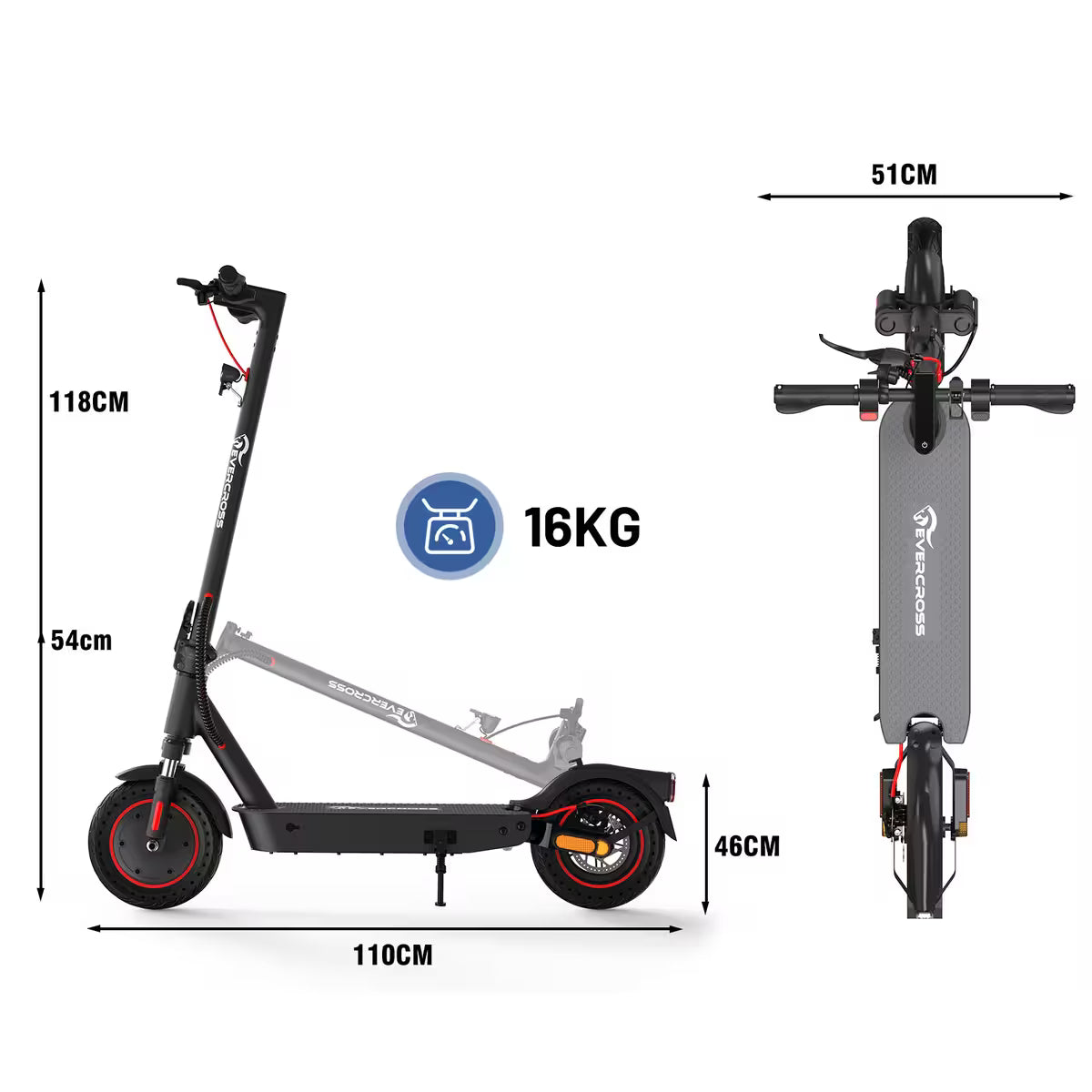 When folded, the scooter measures 110 × 51 × 54 cm. Weighing only 16 kg, its lightweight and compact design allows students and office workers to carry and store it effortlessly.