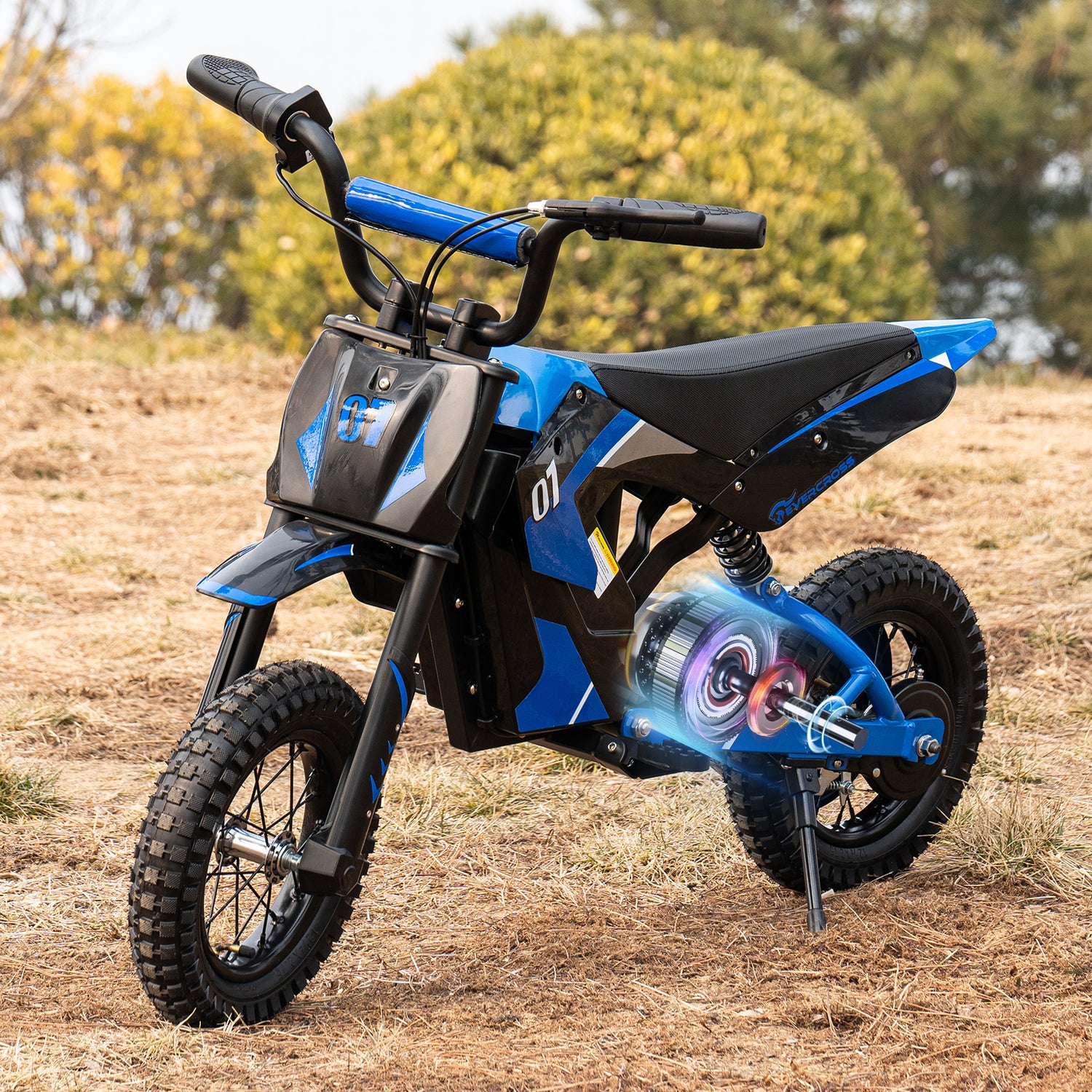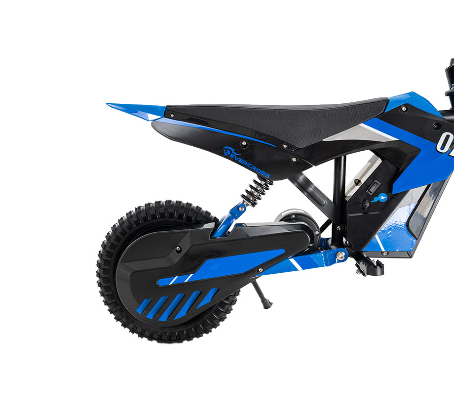 With a 36V 4Ah battery, this kids e-motorbike rides up to 15 km per charge and offers 3 speed modes (8/12/25 km/h).