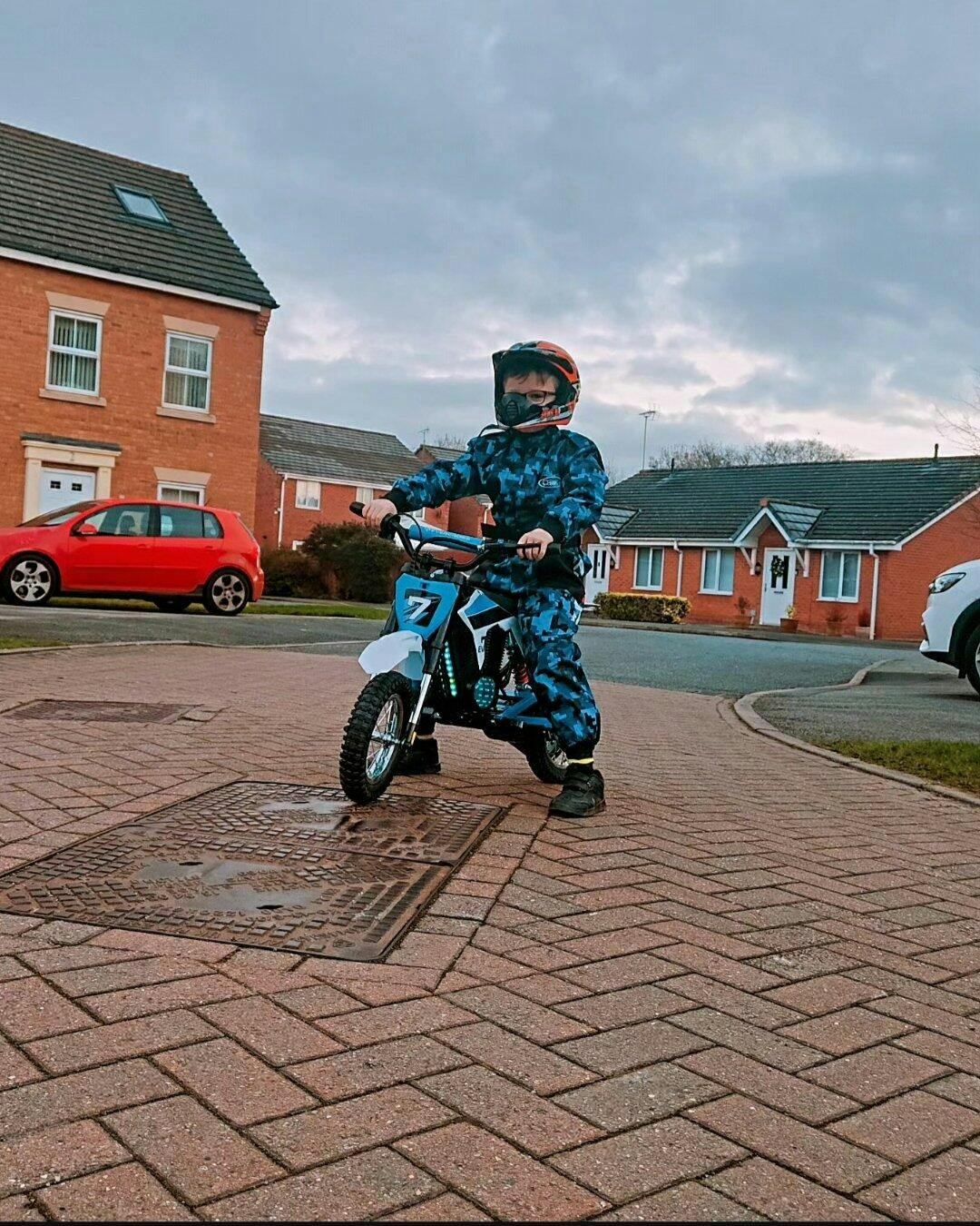 This kids dirt bike comes with Bluetooth connectivity, allowing young riders to enjoy music while cruising. Colorful LED lights and a realistic engine sound add excitement, creating an authentic motocross experience.