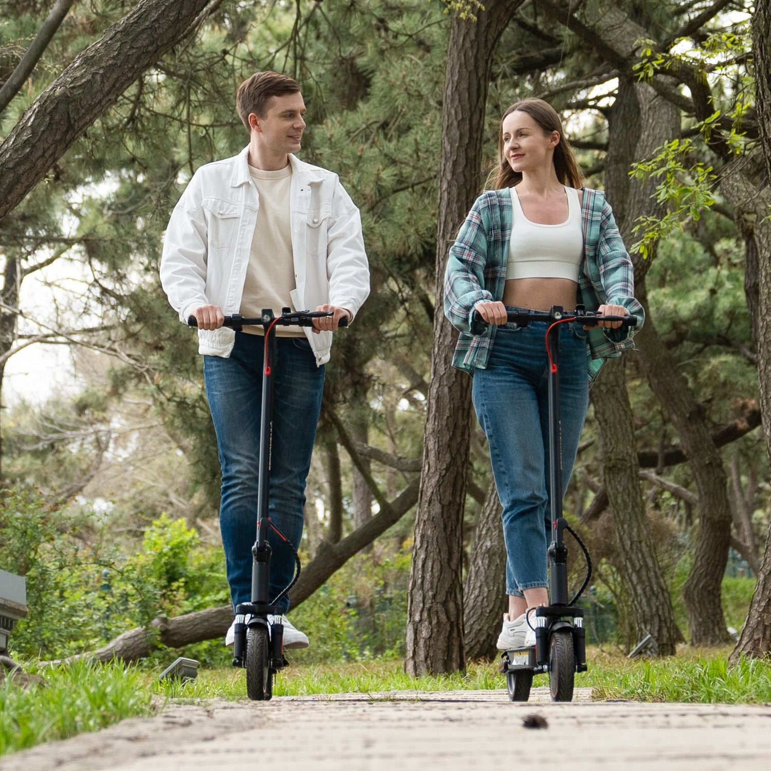 Equipped with 8.5″ solid honeycomb tires and dual suspension (front and rear), the EV85F effectively absorbs bumps and uneven surfaces for a comfortable city ride. The non-zero start function requires a gentle push to 5 km/h before the motor activates, reducing accidental acceleration. Weighing just 15 kg and folding down to a compact 108×47×114 cm, it’s easy to carry and store—perfect for public transport or car trunks.