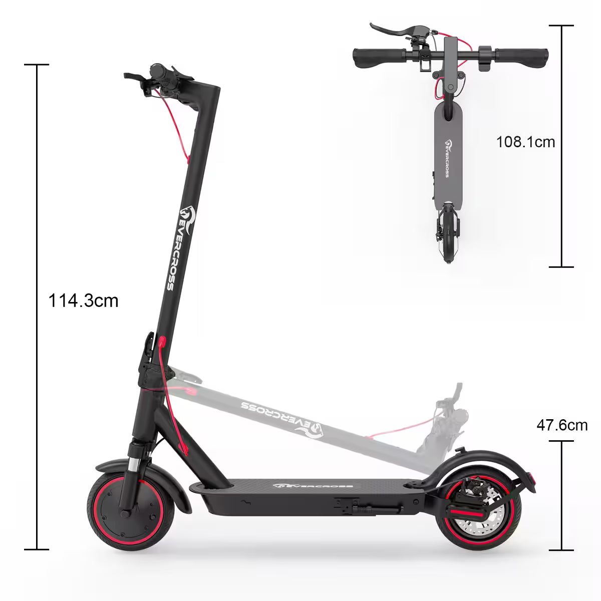 The EVERCROSS EV85F electric scooter features a 350W front hub motor that delivers smooth and quiet power, making it ideal for daily commuting and light hill climbs. With three speed modes (ECO / D / S) and a top speed of up to 25 km/h, it adapts to various urban scenarios. The integrated 36V 7.8Ah smart battery supports up to 30 km of real-world range and includes temperature control, overcharge protection, and battery health monitoring. Charging takes approximately 5–6 hours.